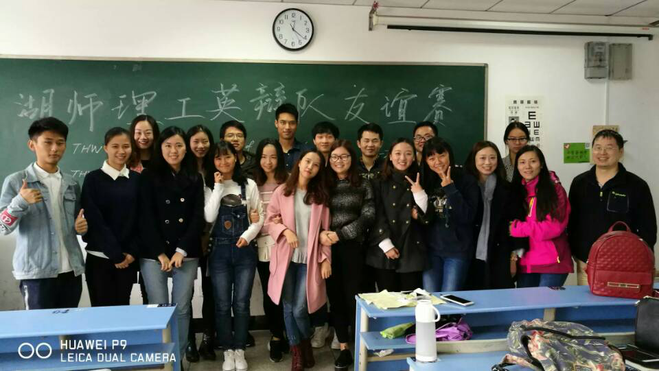 言归正传,偷拍 英辩队成立虽然不久,但是我们有完善的训练选拔制度。除去每周的训练赛外,我们还会在每个月与湖北理工学院英辩队进行友谊赛。届时两个学校的英辩队指导老师还会进行专业的指导和点评。(下图为十月份湖师理工第一次友谊赛)