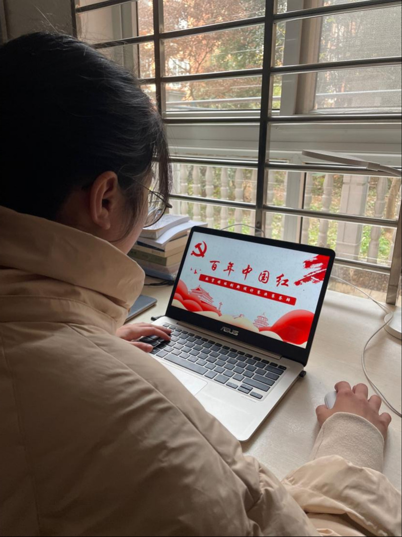 该团队成员从中华优秀传统文化中汲取营养,结合黄石文化特点,创造性地设计出了《百年中国红》这一作品,献礼中国共产党的百年华诞。作品中,将黄石矿冶文化、百年华新文化以及湖师大学子的不断追求进取的精神相结合,共同谱曲了党领导下百年建设的华美乐章。