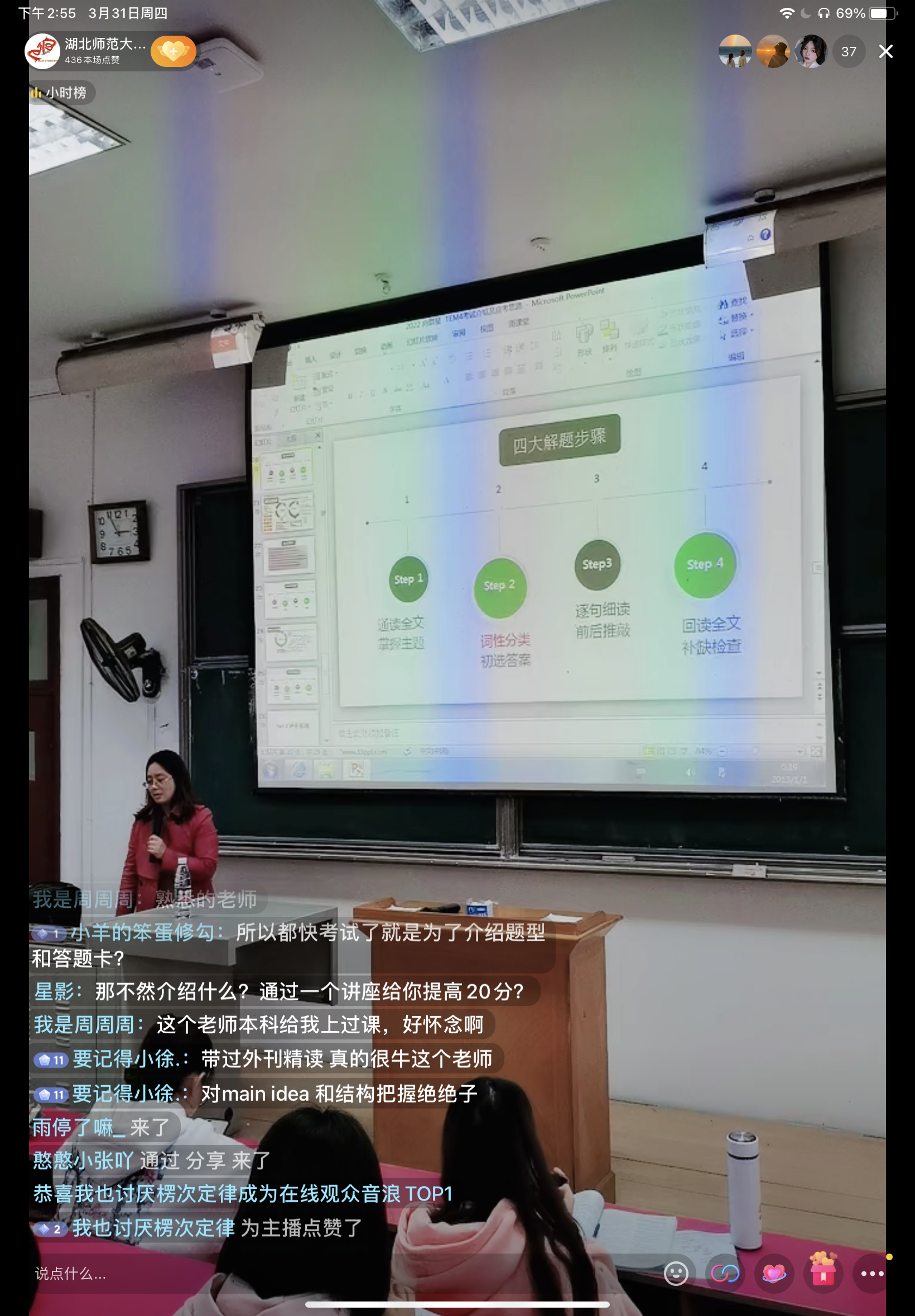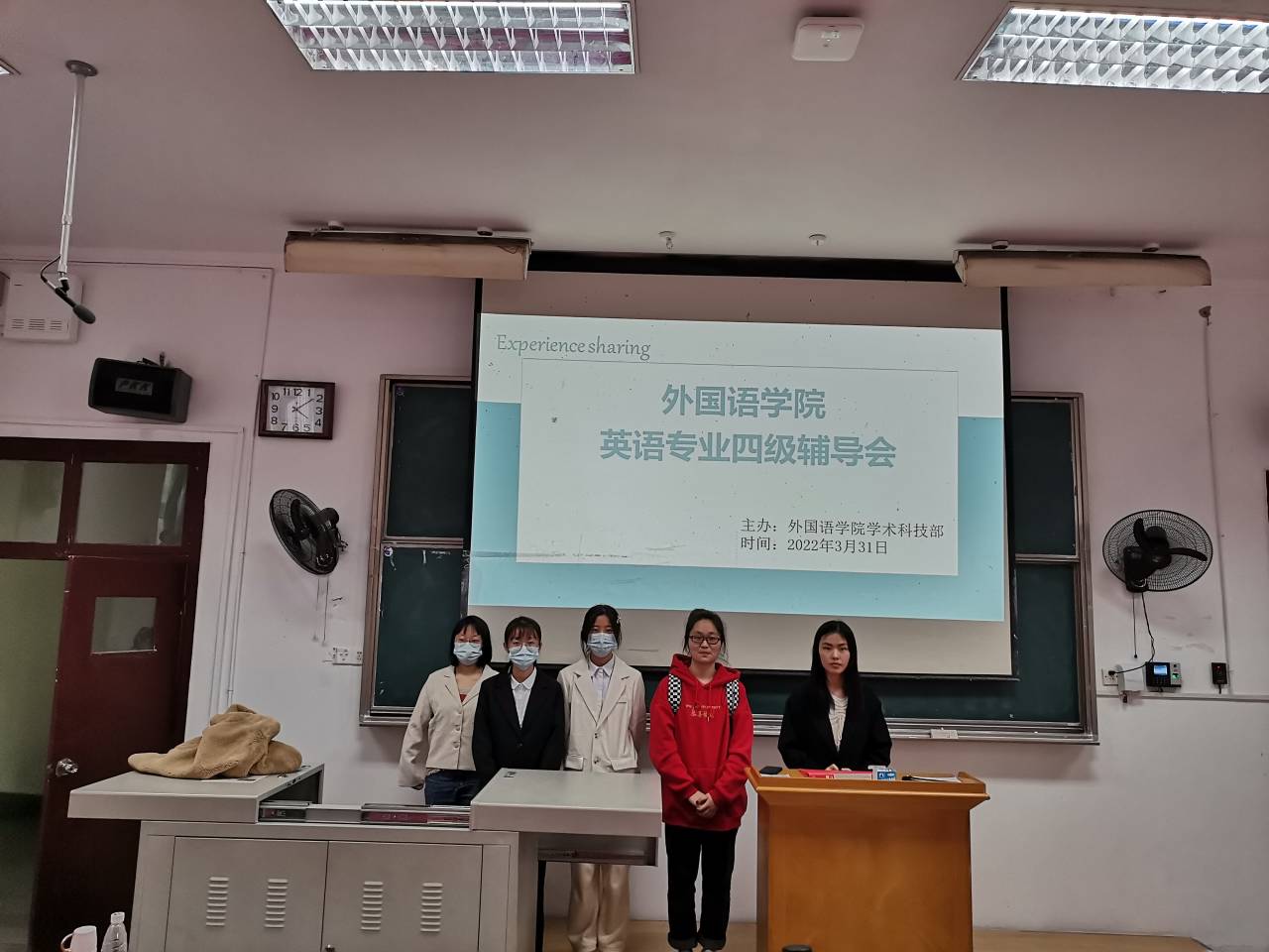 2022年3月31日下午14点20分,偷拍 团总支学术科技部于教育大楼1J22教室举行了2022年英语专业四级考前辅导会,参与此次辅导会的人员为偷拍 20级全体英专生,本次辅导会的主讲人是具有多年英语专业四级指导经验的向群星老师和1902班的2021年度学习标兵田甜。为响应偷拍 疫情防控的相关政策,此次辅导会在抖音平台同步直播。