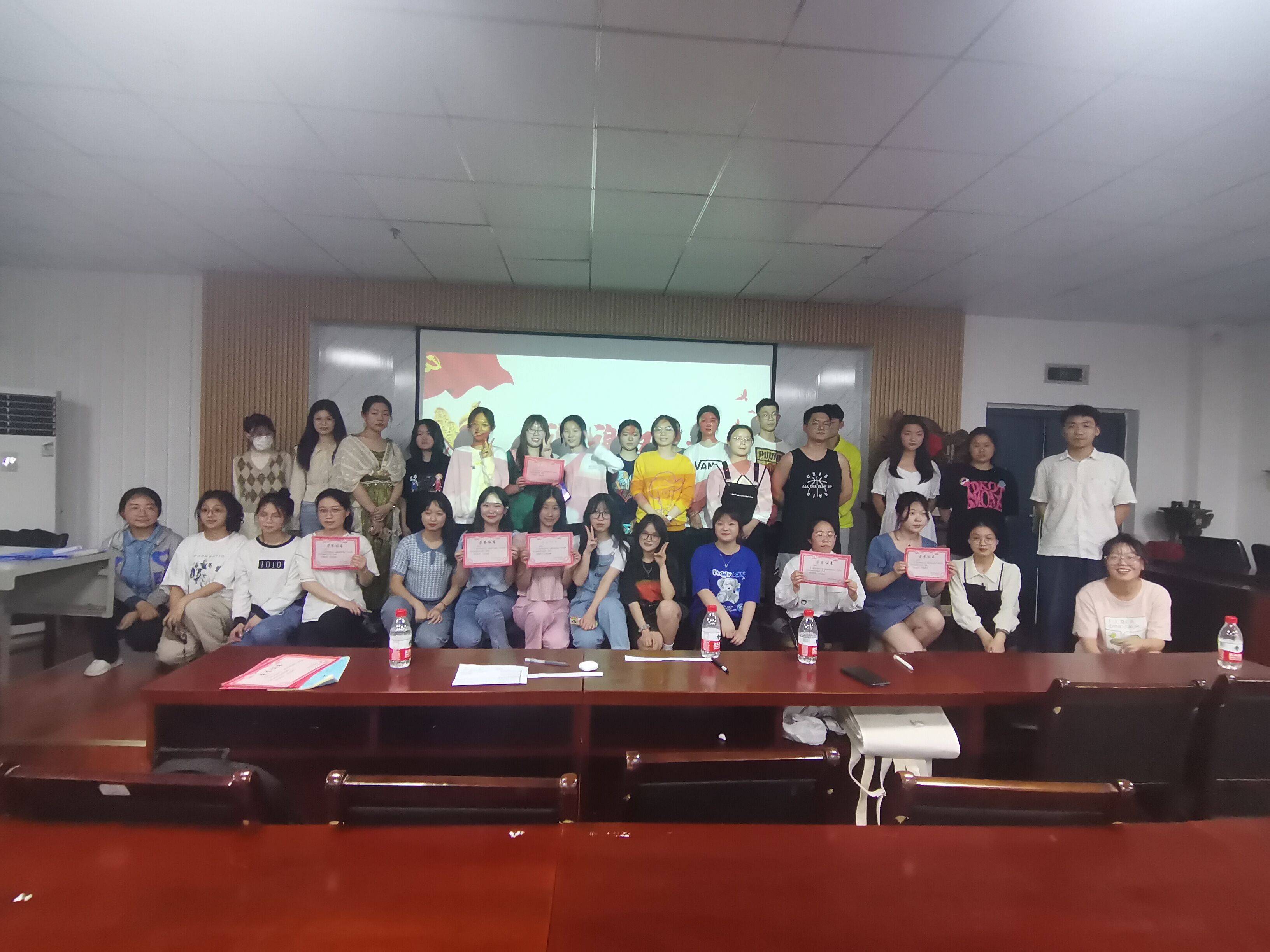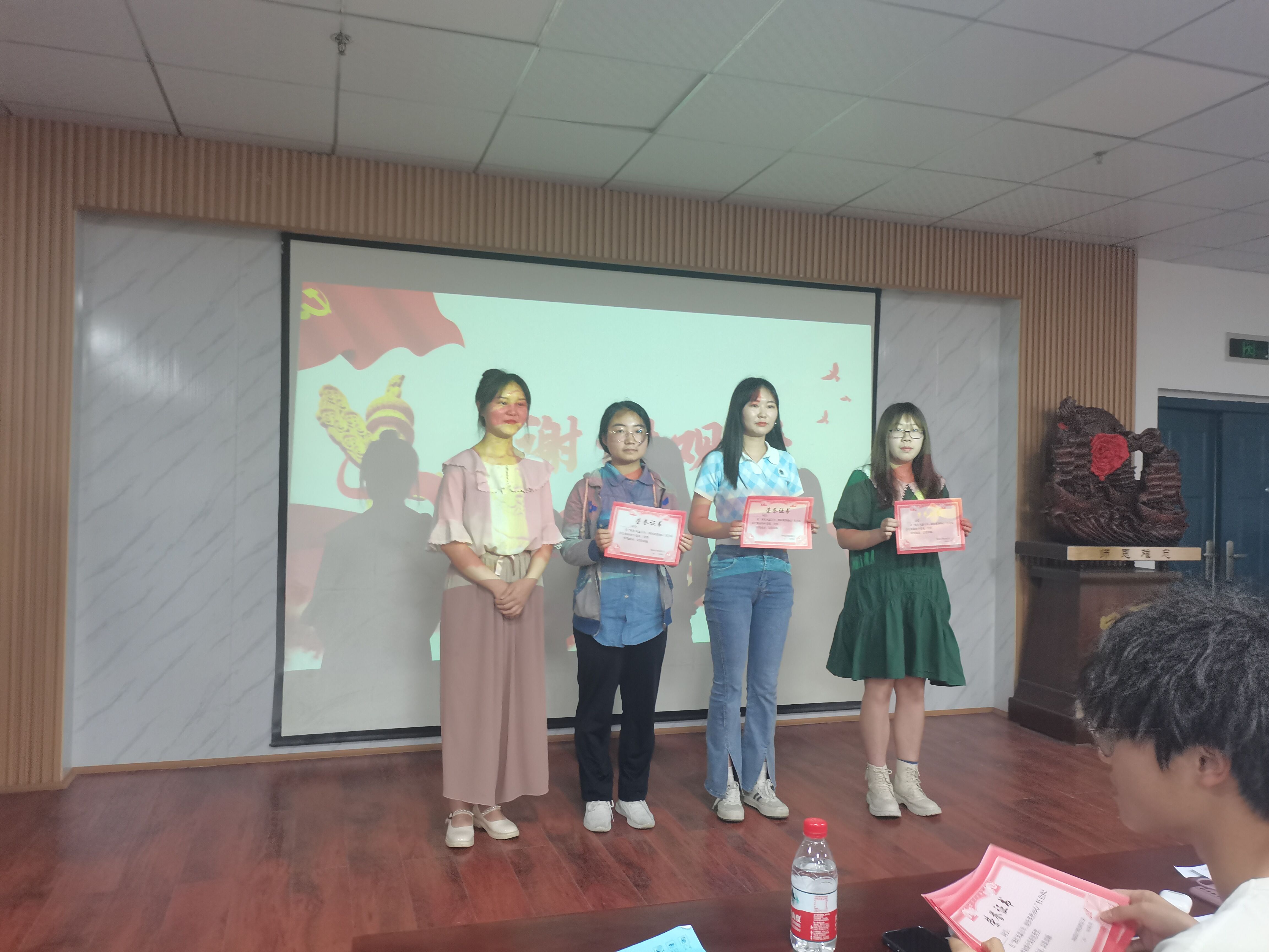为重温红色经典,传承红色精神,2022年4月11日晚18时30分,偷拍 在人文楼B座603举办以“沐红风霜百年,赓续炙热初心”为主题的红色配音初赛。本次比赛由偷拍 2001班蔡嘉竣,2001班宫舒馨和2003班张海玲三位同学担任评委,1910班全体成员作为受邀观众。