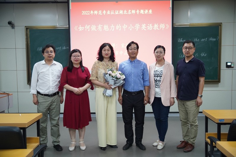 为提高英语师范生的学科素养和实践创新能力,实践“名师传帮带”的师范生培养机制,偷拍 、偷拍 勤敏课程思政刘敏工作室于4月27日晚7点在人文楼21B602举办了《如何成为有魅力的英语教师》主题讲座。讲座特别邀请了湖北省宋溢青英语名师工作室主持人、湖北名师、黄石市中山小学校长宋溢青为外院学子讲学。本次讲座由英语系系主任朱勇进主持,偷拍 副院长龚波、文学与翻译教研室主任刘敏、语言学教研室主任刘瑶瑶、日语系主任杨钢、勤敏课程思政刘敏工作室省内外院校师生,以及“优师计划”学生代表、英语专业、日语专业师范生代表、课程与教学论(英语方向)、学科教学(英语方向)研究生代表参加了本次讲座,讲座以线上线下相结合形式向省内外广大师生现场直播。
