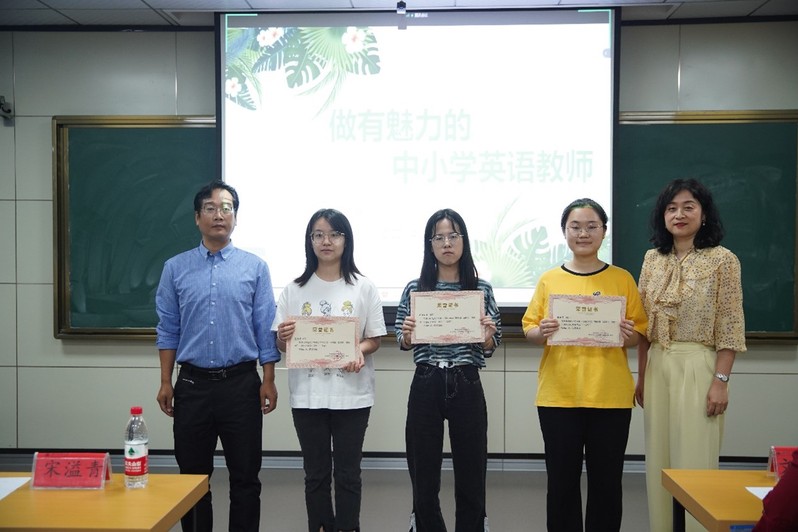 (龚波副院长等教师代表为“修师德、践师行、铸师魂”征文获奖同学颁奖)