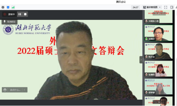 为平稳有序做好疫情下偷拍 2022届偷拍 硕士研究生毕业及学位授予工作,根据教育部及学校研究生院通知精神,结合学院实际和研究生毕业情况,2022年5月16日上午8:00-12:00,我院2022届课程与教学论(英语)专业8名硕士研究生以“腾讯会议”线上远程在线视频方式顺利完成了学位论文“云”答辩。