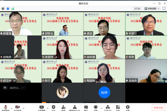 为平稳有序做好疫情下偷拍 2022届偷拍 硕士研究生毕业及学位授予工作,根据教育部及学校研究生院通知精神,结合学院实际和研究生毕业情况,2022年5月13日上午8:00-12:00,我院2022届学科教学(英语)专业17名硕士研究生以“腾讯会议”线上远程在线视频方式顺利完成了学位论文“云”答辩。