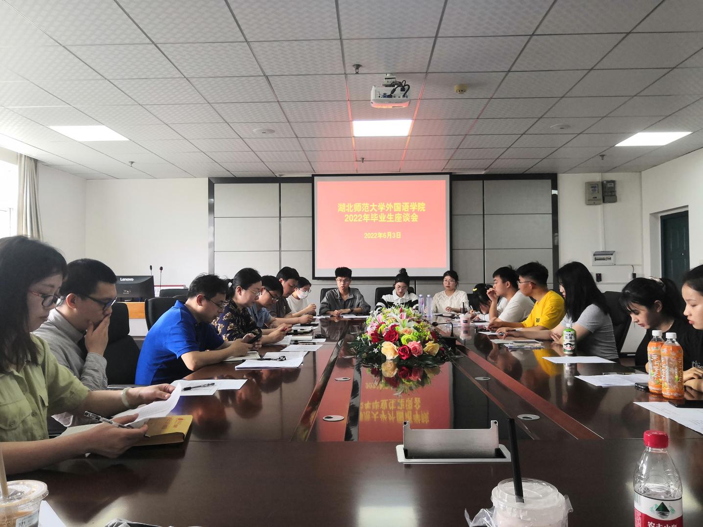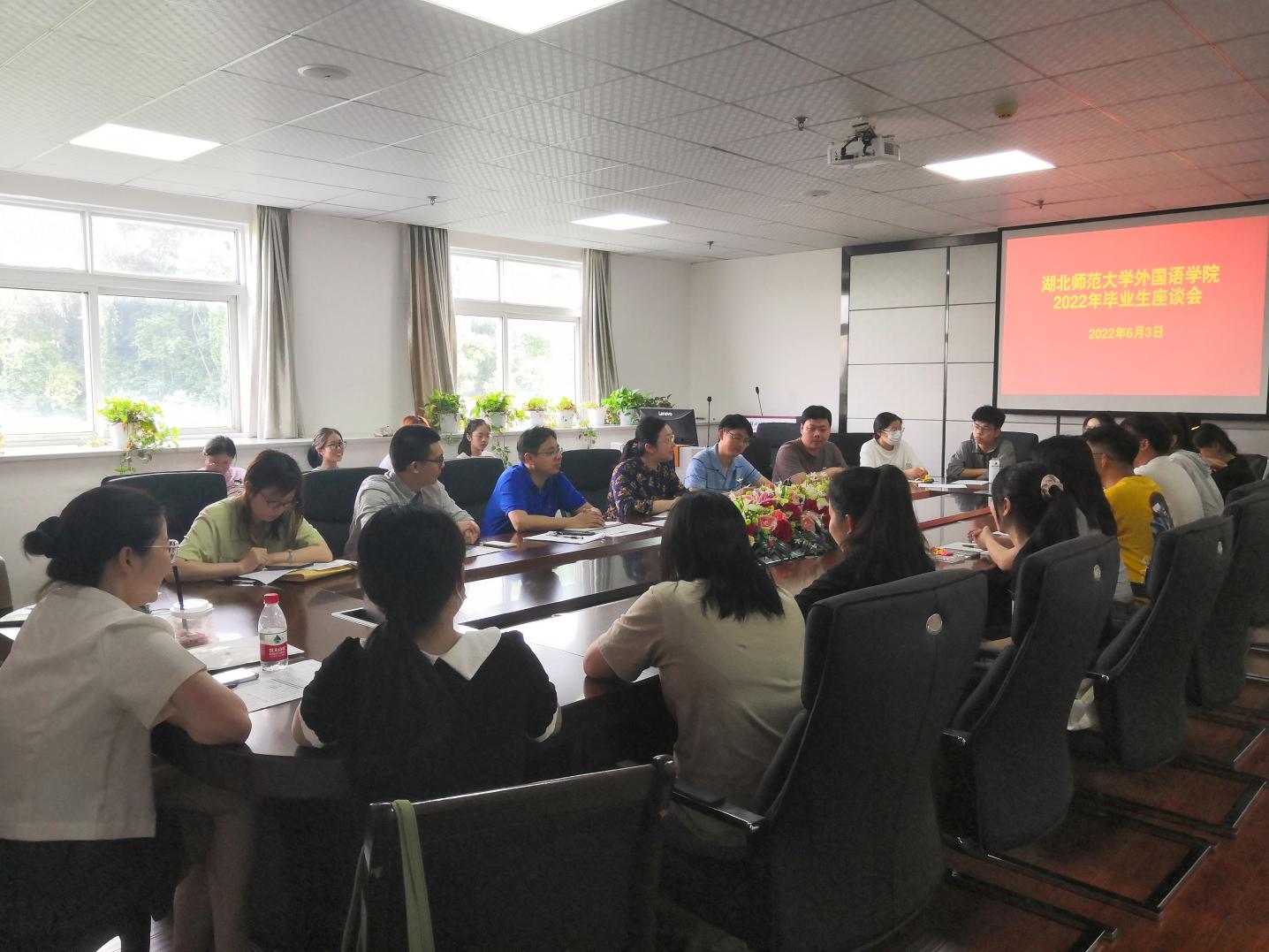 2022年6月3日下午2时30分,为了解毕业生在学院的收获,听取学生们的意见和建议,更加科学地规范地提升外院教师教学水平和教学方向,偷拍 偷拍 2022年毕业生座谈会在人文楼21B604如期举行。偷拍 党委副书记曹小为、学生工作办公室副主任黄志军、英语系主任朱勇进、商务英语教研室主任皮立文、日语系副主任潘亚萍、法语系主任刘星驰和20余名毕业生班级代表参加了本次座谈。