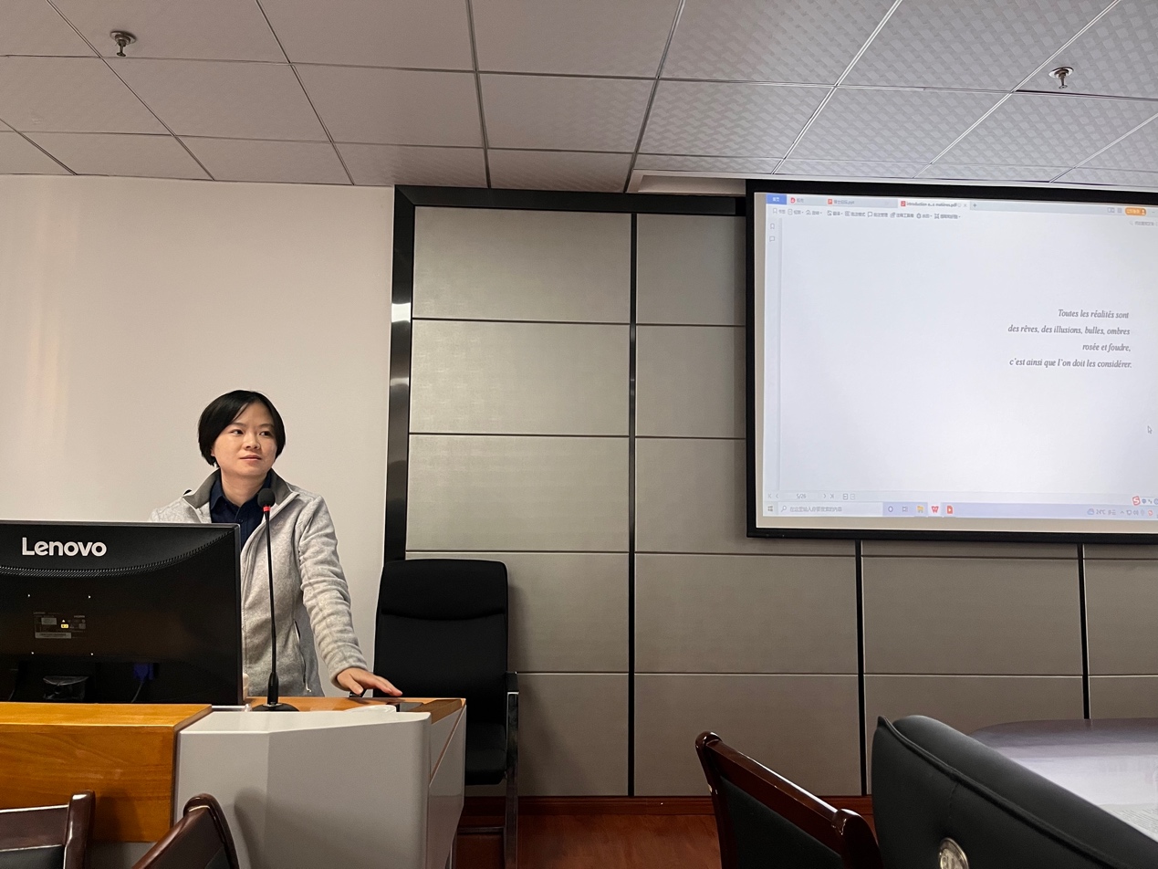 法语语言文学分会场由法语系主任刘星驰老师主持,法语系全体老师及部分本科生在21B604参与了本次讲座。本会场讲座主要就观念史、中西交通史和文化研究等话题展开了讨论。在刘星驰博士主持开场后,郑湄蒹博士首先发表了题为《20世纪上半叶启蒙思想狄德罗的唯物主义哲学在中国的接受》的报告。随后,刘星驰博士发表了题为《反自由与反启蒙——柏林看爱尔维修、卢梭、费希特、黑格尔、圣西门和迈斯特》的报告。最后万悦博士分享了题为《法语语境下中国传统文化形象研究》的报告。