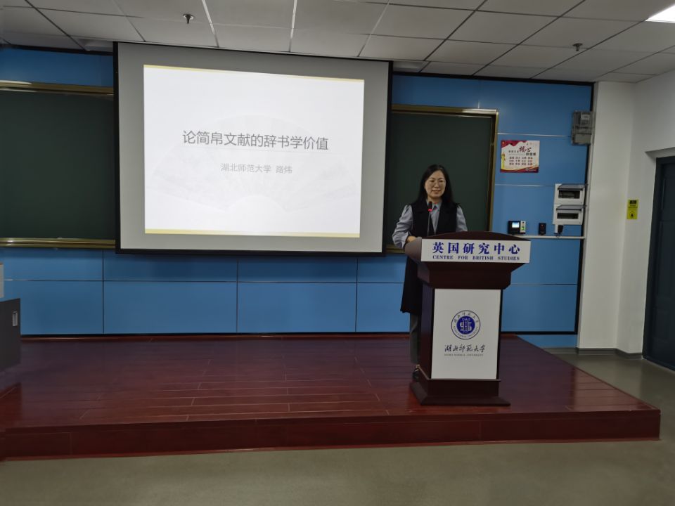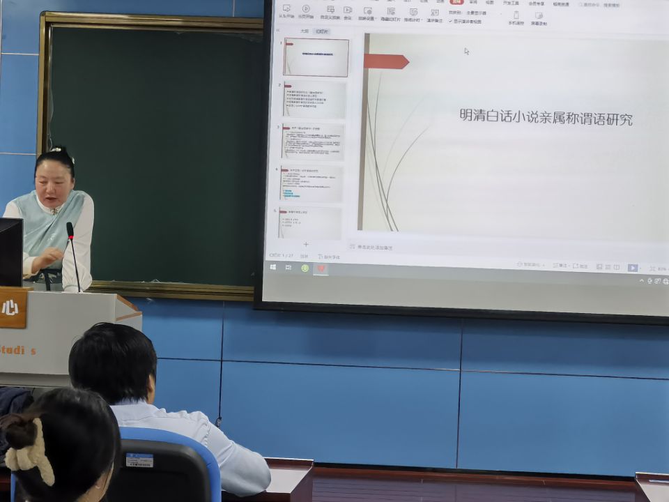 汉语国际教育与日语语言文学分会场由院长丰国欣教授和日语系主任杨钢老师主持,日语系全体老师和部分汉语国际教育、国别与区域方向研究生研究生在21B404参与了本次讲座。路炜博士以简帛文献的辞书学价值为主题,为大家介绍了简帛、辞书的概念,两者之间的联系和意义,简帛文献的辞书学价值,引发了我们对辞书典籍编撰者的崇敬之意,并从中了解到知识的跨学科跨领域。 王殊茵博士从明清白话小说中亲属称谓出发,详细说明了选择以《醒世姻缘传》为主要研究对象的原因,并举例说明亲属称谓的变化,从中可看出学术研究的严谨性;证明语言并不是孤立存在,与社会背景等多种因素息息相关。颜龙龙博士以近代日本对汉冶萍的多元交涉研究为主题,向我们主要展示了通过查找各类文献,肃清了近代日本对汉冶萍的多元研究主题,报告图文并茂、讲解细致,让我们学习到了查找文献资料的完整性;资料整理的重要性。