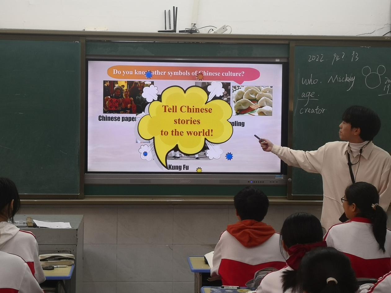 观摩活动上,学院师范英语专业实习生万泽华、万青云和黄哲珏分别对八年级英语Unit5 Do you want to watch a game show? 阅读课进行同课异构教学展示,他们通过迪士尼动画中的经典人物Mickey Mouse引导学生学习直面困难精神。三位同学以不同的形式组织课堂,并独特融入思政元素,将中华服饰、美食、戏剧、神话传说等元素引入课堂教学,激励学生坚定文化自信,使课堂实现了价值引领与知识传授和能力提升的有机统一。