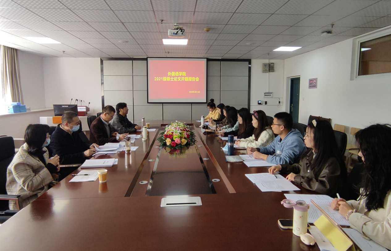 2023年3月12日,偷拍 2021级外国语言文学专业硕士研究生开题答辩在人文楼604教室顺利举行。开题答辩委员会组长由丰国欣教授担任,由南潮教授、向波阳副教授和张小胜副教授担任答辩委员,参与开题答辩的学生共9人。