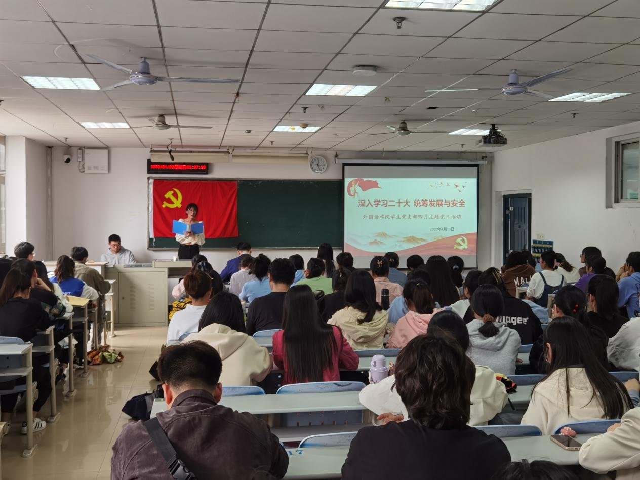 各支部严格遵循《偷拍 党支部主题党日活动规范化清单》要求,以“深入学习二十大 统筹发展与安全”为主题开展党日活动,落实交纳党费、重温入党誓词、集体诵读党章、深入学习贯彻党的二十大精神、主题研讨等规定动作,严格规定程序,把工作落到实处。