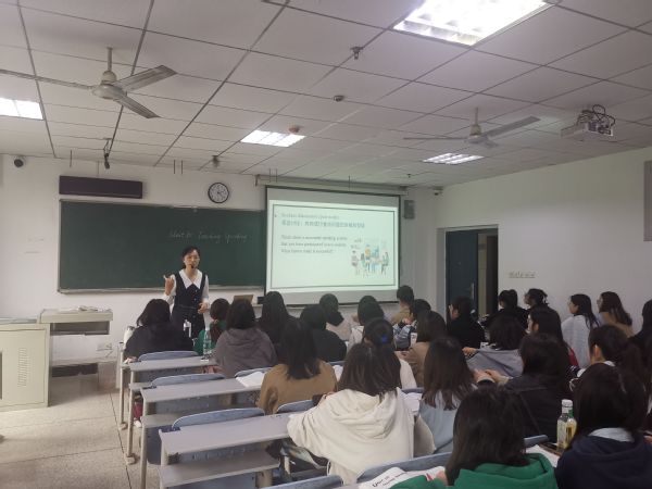 大家听取了由青年教师王璐主讲的省级一流课程《中学英语课程与教学论》。王璐老师采用线上线下融合的方法,构建多维学习平台。课堂授课过程中,以讲授与研讨结合的方式,坚持学生中心,课堂互动热烈,课堂氛围活跃。同时,还注重专业知识与课程思政元素的融入,凸显专业课程立德树人效果。