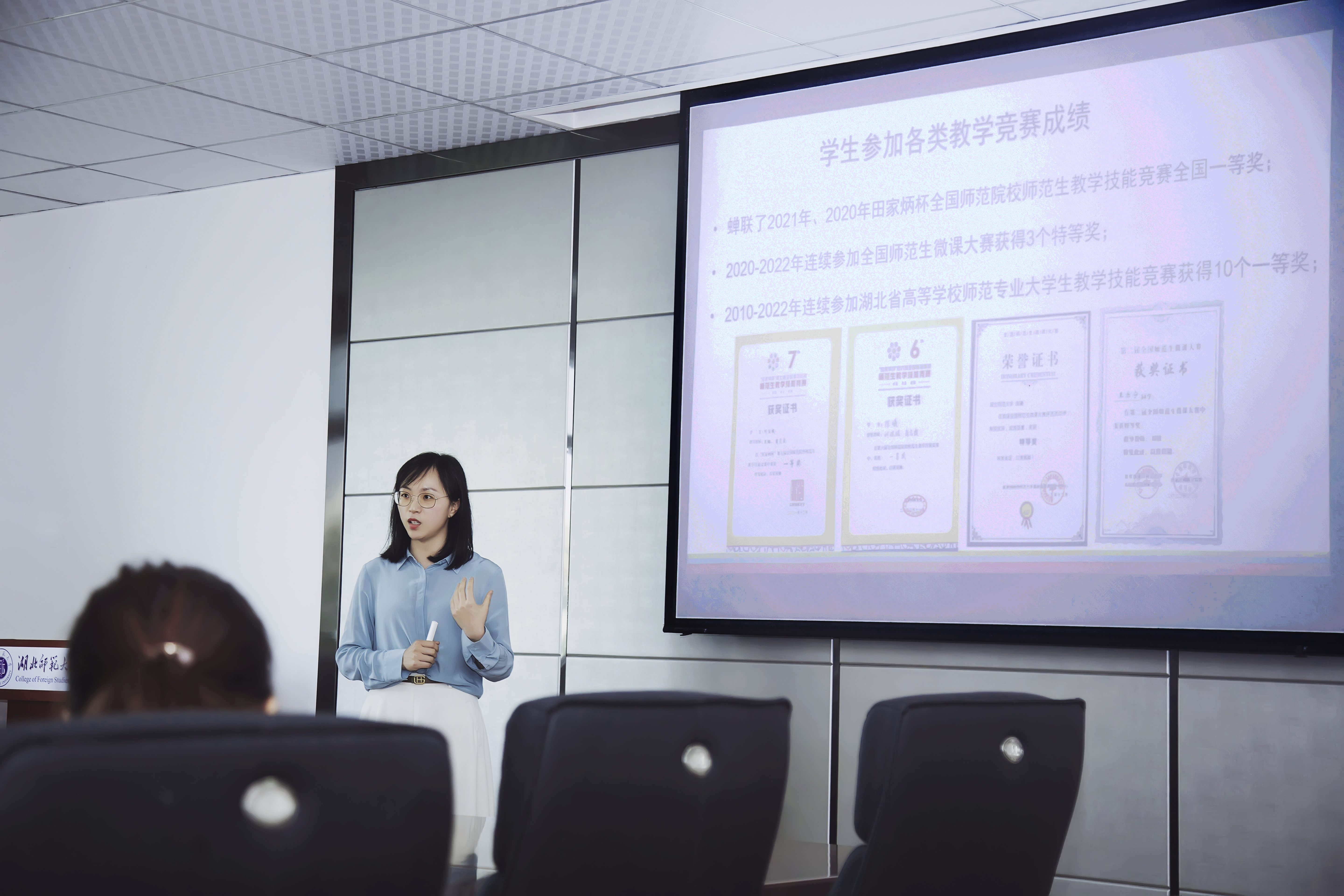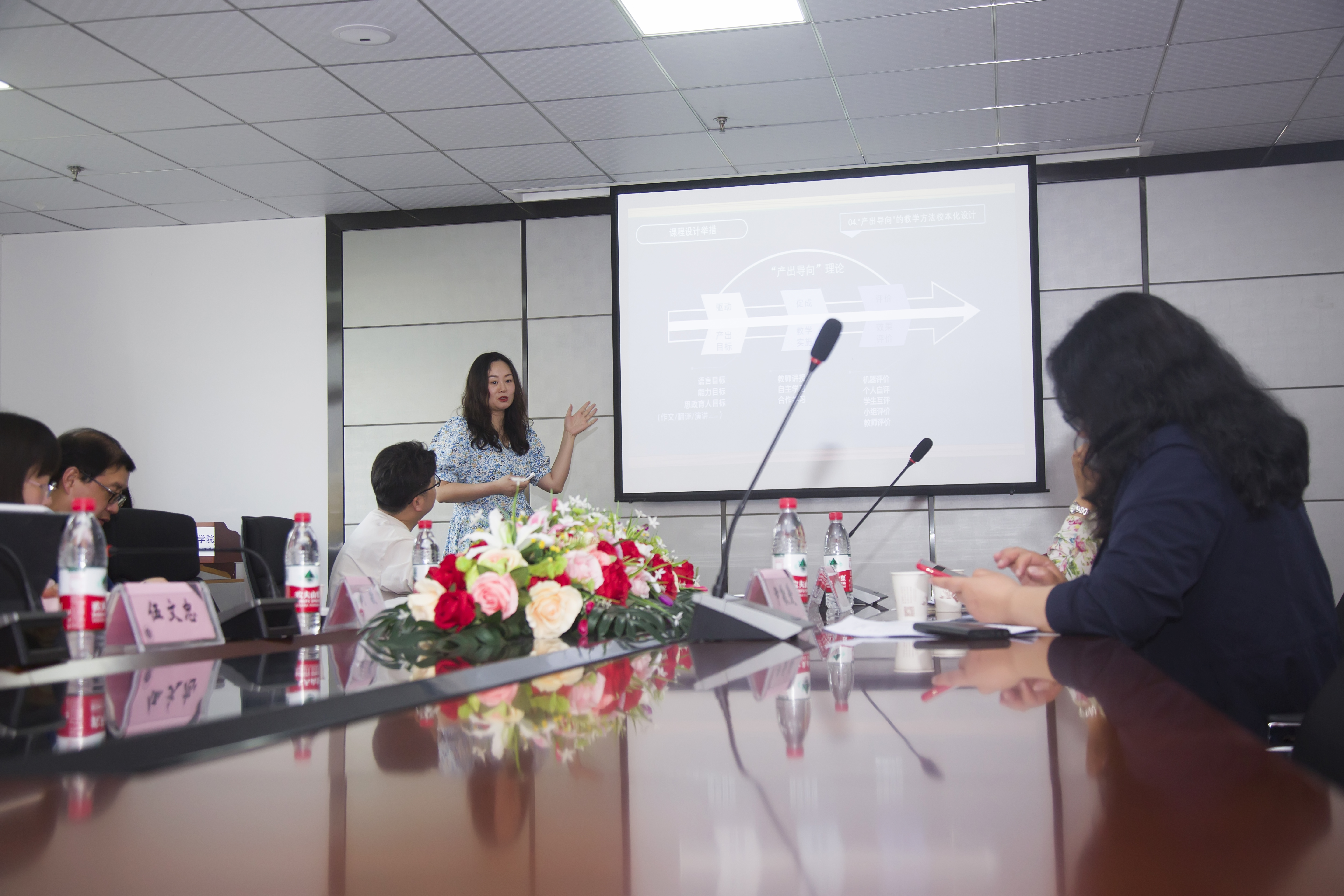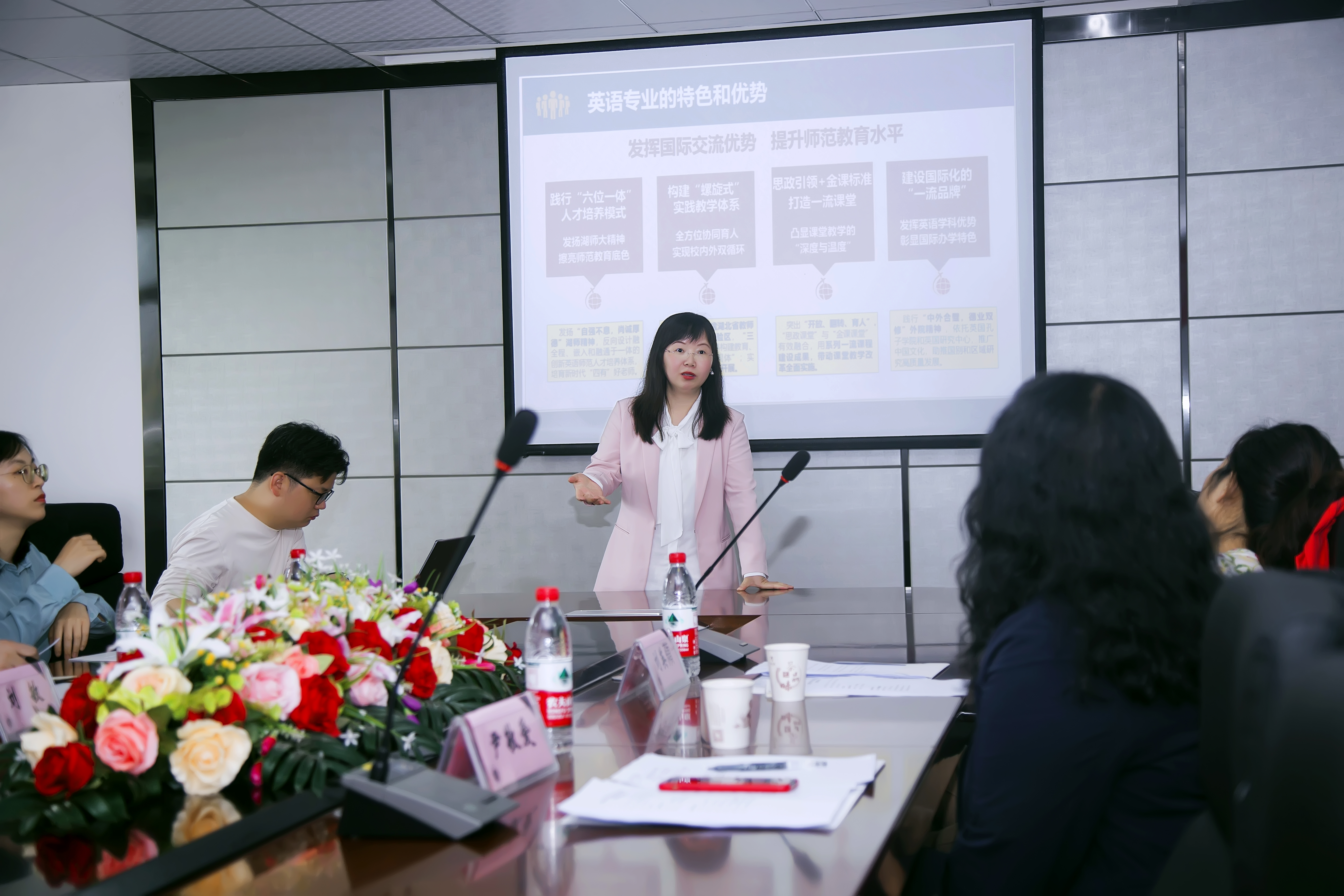 随后,日语系主任杨钢介绍了日语专业建设、人才培养方案制定等相关情况;国家级一流本科课程“职业素养英语”、省级一流本科课程“6小时解码英语新闻听力”负责人伍文忠主任作了“课程建设中教学扮演之设计者”的分享;省级一流课程“基础英语”负责人唐凤华主任分享了该课程历时7年的建设之路;省级一流课程“英语学科教学论”负责人王璐老师分享了该门课程建设的经验。