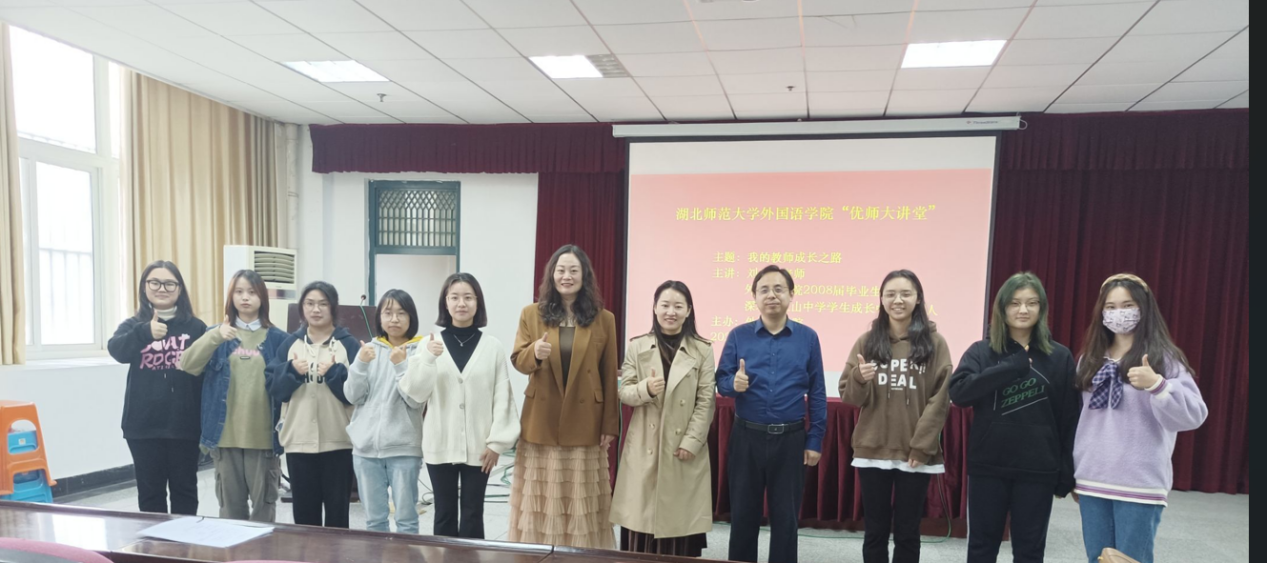 2023311日上午,为强化英语专业“优师计划”师范生的教育情怀和实践创新能力,实践“名师传帮带”的师范生培养机制,偷拍 “优师大讲堂”在信息大楼二楼报告厅举行。偷拍 英语专业优秀校友,深圳市教学名师刘米竹老师受邀为全体师范生作了《我的教师成长之路》主题讲座。偷拍 党委书记王海燕党委副书记曹小为、教学副院长龚波英语系主任朱勇进综合英语教研室主任、优师计划2101班班主任唐凤华辅导员杨梦伟、外语学院全体“优师计划”师范生英语专业师范生代表出席了此次活动。讲座由朱勇进主任主持。