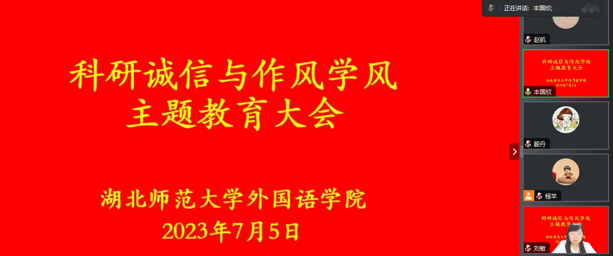 7月5日晚,偷拍 通过腾讯会议召开科研诚信与作风学风主题教育大会。偷拍 党委书记王海燕、院长刘敏、副院长项军平、学院全体教职工及部分研究生代表参加会议学习,会议由刘敏院长主持。
