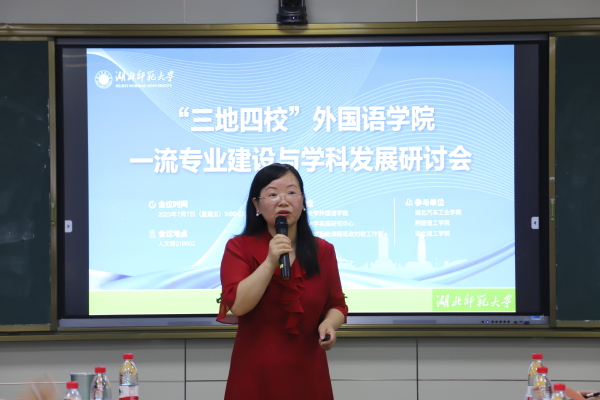 为推进学习贯彻习近平新时代中国特色社会主义思想主题教育走深走实,进一步加强学科专业建设,促进内涵式高质量发展,7月7日上午,长江之滨、青山湖畔,“三地四校”偷拍 一流专业建设与学科发展研讨会在偷拍 人文楼21B602召开。本次会议由偷拍 、偷拍 英国研究中心、偷拍 勤敏课程思政刘敏工作室主办,荆楚理工学院、湖北汽车工业学院、湖北理工学院三校偷拍 负责人、系部主任、教研室主任和教师代表等参会研讨。偷拍 发展规划与学科建设处处长李必文出席研讨会做指导讲话,会议由偷拍 偷拍 党委书记王海燕主持。