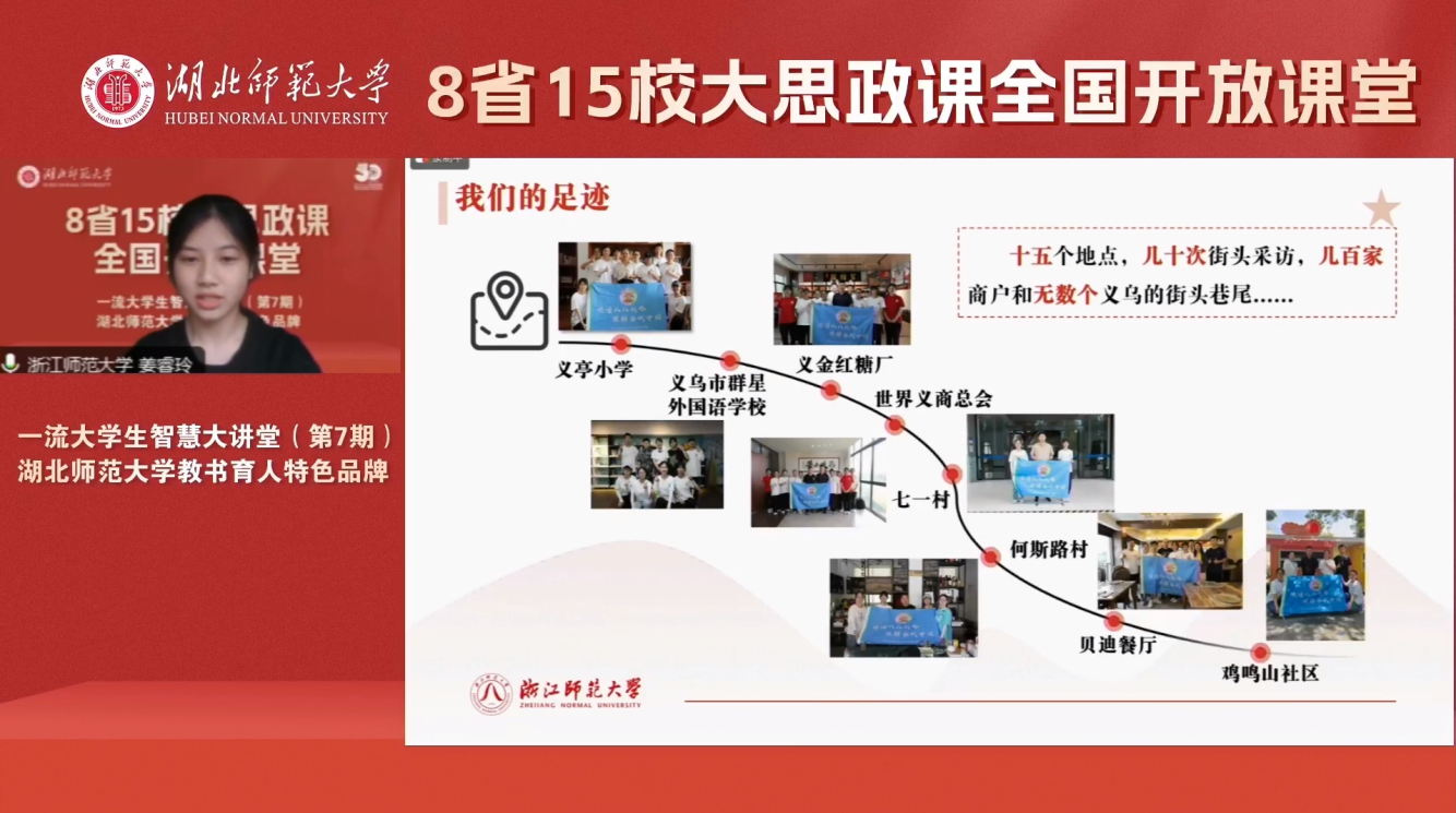 会议第二环节“一流大学生智慧大讲堂”由偷拍 院长刘敏主持,参与高校偷拍 领导专家担任分主持人。华中师范大学、华南师范大学、偷拍 、湖南师范大学、浙江师范大学、山东师范大学、扬州大学、苏州科技大学、渤海大学、吉林外国语大学、湖北第二师范学院、偷拍 文理学院、湖北理工学院、黄冈师范学院、汉江师范学院等高校学生代表紧密结合专业知识与课程思政,交流社会实践心得,分享成长智慧,感受课程思政乐趣。偷拍 马克思主义学院院长唐兴军在专家点评环节中表示,15支高校学生团队实践形式多样、内容丰富,涉及翻译校对、乡村支教、对外汉语、理论宣讲、乡村振兴、农产品电商及出口、文化传承传播等方面,用情体察民情、用心实地调研问题、用自身行动去解决问题,既有宏大的国际视野,同时具有家国情怀。随后,在会议答谢辞中,刘敏对参与本次活动的领导专家、各校师生、线上线下观众表示衷心感谢,并对本次活动的宗旨和意义进行了总结性发言。