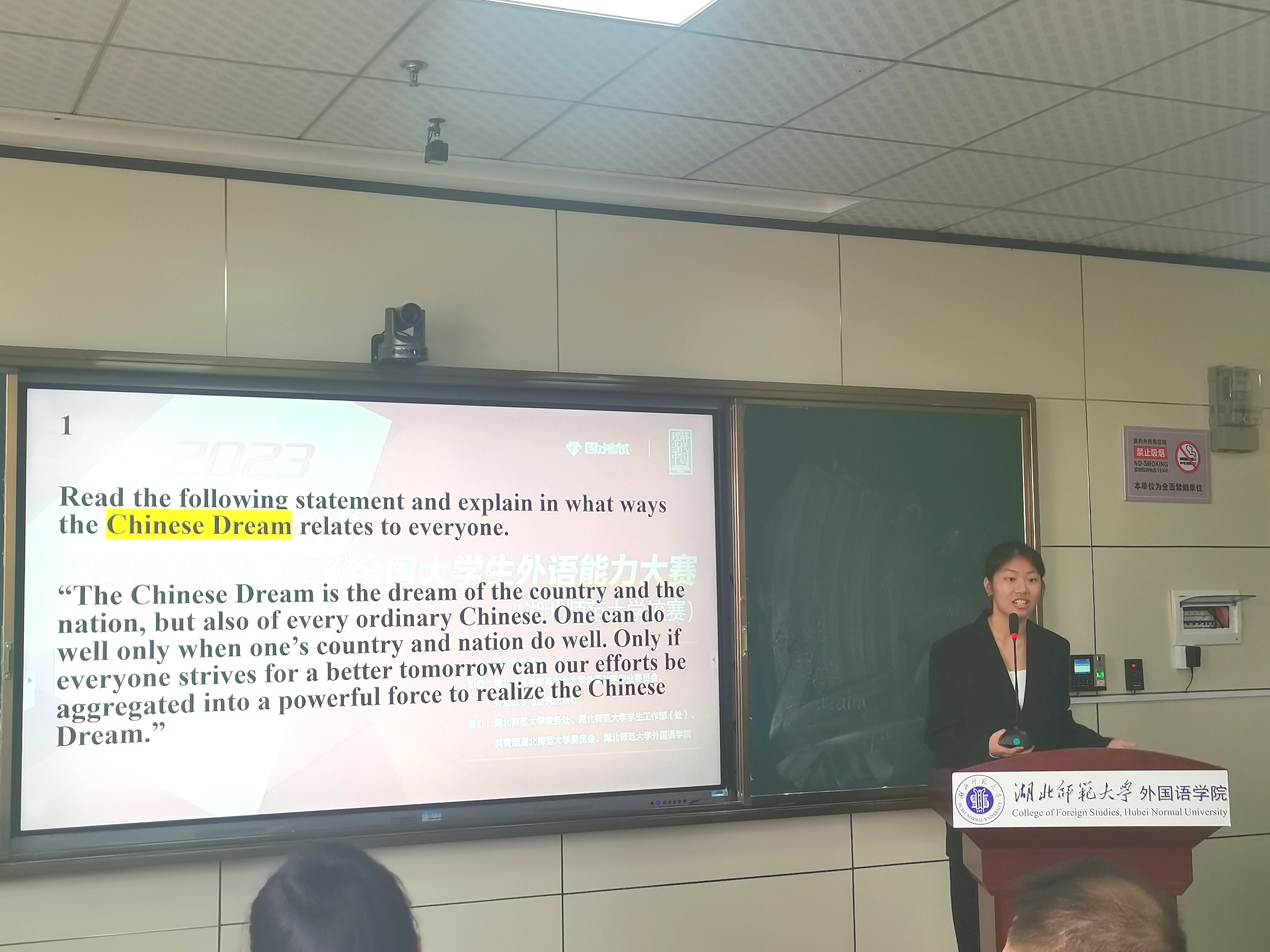 为深入贯彻党的二十大精神,落实立德树人根本任务,为国家培养更多有家国情怀、有全球视野、有专业本领的高水平国际化人才,10月12日下午,偷拍 2023年“外研社·国才杯”“理解当代中国”全国大学生英语演讲比赛校园决赛在人文大楼21B602顺利举行。 经过激烈的角逐,余波、江珊和高晨瑶等三位同学分别荣获此次决赛的前三名。 三位优秀选手将代表偷拍 参加将于10月底举行的2023“外研社•国才杯”“理解当代中国”英语演讲大赛湖北省省级比赛。