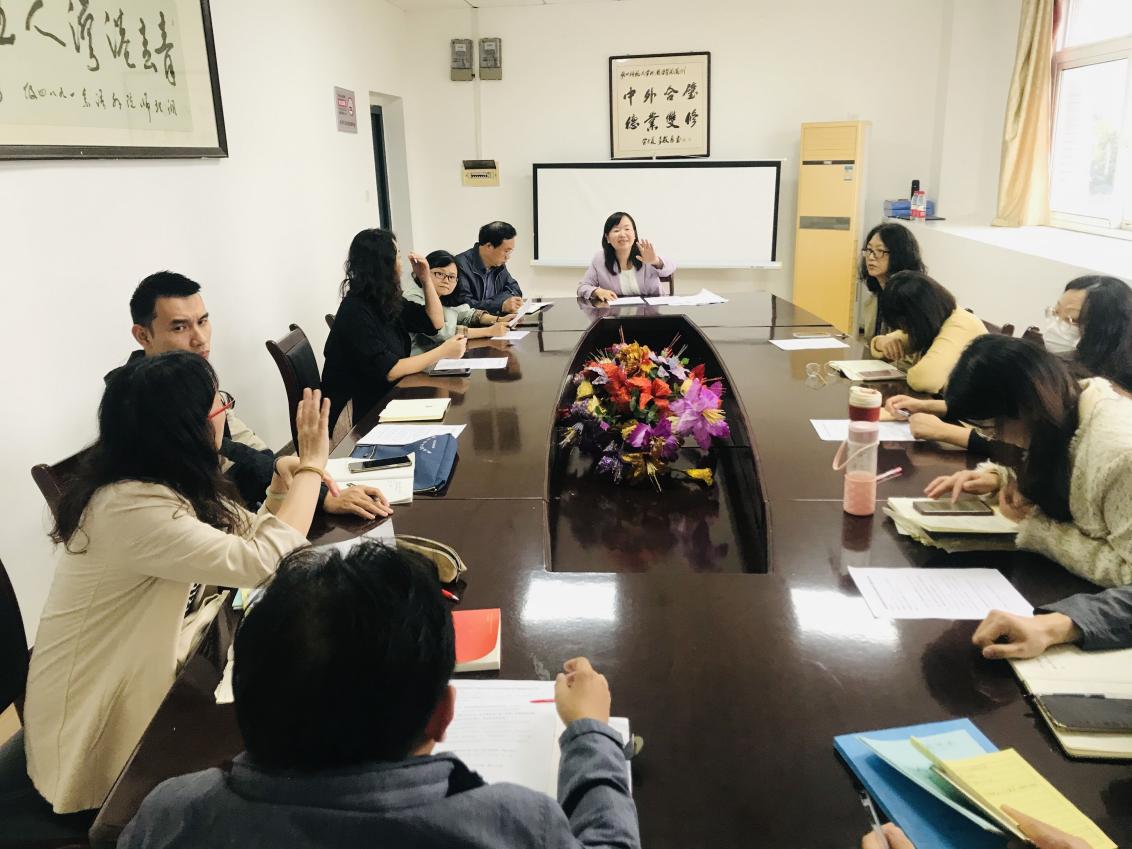 英语、商务英语、日语及法语专业负责人和担任“理解当代中国”课程的各位老师分享了“理解当代中国”系列教材的使用情况以及在课程教学目标设定、教学环节实施等阶段融入习近平新时代中国特色社会主义思想核心要义的典型做法。项军平强调,推进“三进”工作的关键是要扎实做好课程建设,培养学生跨文化思辨意识,提升学生讲好中国故事的能力。最后,刘敏对大家的发言进行了总结,并对偷拍 下一阶段“三进”工作进行了部署。