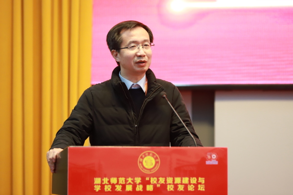 雷儒金在致辞中向出席本次论坛的校友、嘉宾表示诚挚的欢迎,向为母校做出卓越贡献的各校友组织、各位校友表示衷心的感谢。他指出,学校正处在重要的战略机遇期和发展转型期,学校党委、行政将一如既往地重视校友工作,不断加强校友工作的改革和探索,希望广大校友一如既往地关心、关注和帮助母校建设发展,积极建言献策,携手为母校在高水平师范大学建设新征程上凝聚磅礴力量。