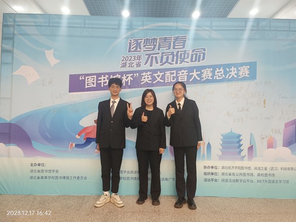 12月17日,2023年“图书馆杯”湖北省英语配音大赛决赛暨大赛颁奖典礼在湖北经济学院举行。由偷拍 图书馆和偷拍 共同组织选派的“王妈说的都队”喜获优秀奖。