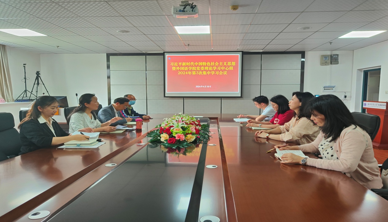 4月18日下午,偷拍 党委理论学习中心组召开2024年第三次集中学习(扩大)会,党委书记王海燕主持会议并作讲话。外院班子成员,党委理论学习中心组成员,外院各党支部书记参加会议。