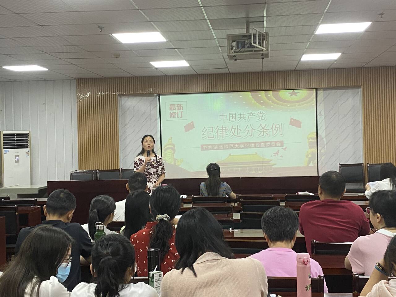 会上,王海燕作《中国共产党纪律处分条例》专题报告,报告深入阐释了《条例》的主旨要义,解读了“六项纪律”的基本概念、本质要求、违纪行为分类和重点条款、新增内容,为外院党员干部把握、准确运用《条例》给予了进一步指导。全体人员还观看了由黄石市纪委、市监委最新制作的警示教育专题片《无所遁形》。王海燕强调,让警示教育入脑入心、融入日常,要时刻紧绷廉洁自律的缰绳,持久不懈地筑牢拒腐防变的防线,全体教职工要做到知敬畏、存戒惧、守底线。