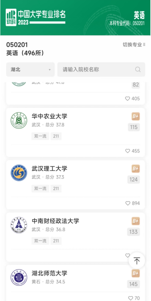 近日,在高等教育专业评价机构软科发布的“2023软科中国大学专业排名”中,我院国家级一流本科专业建设点英语专业在全国496所高校英语专业中排名位于前29%,湖北省省属高校中排名第2,并高质量通过教育部师范专业二级认证。我院省级一流本科专业建设点商务英语专业在全国213个同类专业中位于前18%,湖北省省属高校排名第1。
