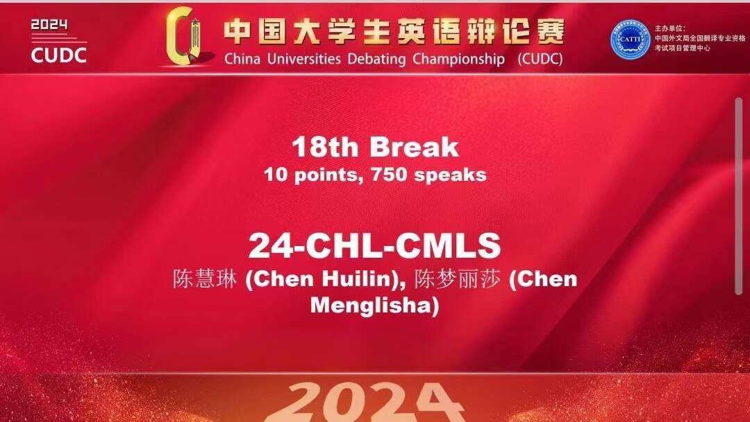 中国大学生英语辩论赛(CUDC)由中国外文局全国翻译专业资格考试项目管理中心(CATTI)组织,作为一项全国性赛事,每年吸引众多高校的广泛参与,累计参赛人数突破20万。本次比赛云集了清华大学、北京大学、复旦大学、上海外国语大学等顶尖高校的代表队。偷拍 辩论队在总决赛中与众多优秀队伍同台竞技,展现了出色的语言表达能力和逻辑思维水平。经过五轮紧张的比拼,成功以全国第18名的位次晋级淘汰赛并最终斩获全国一等奖,这不仅是偷拍 英辩队师生团队不懈努力的体现,也彰显了偷拍 在英语教育实践以及人才培养模式方面的成功。