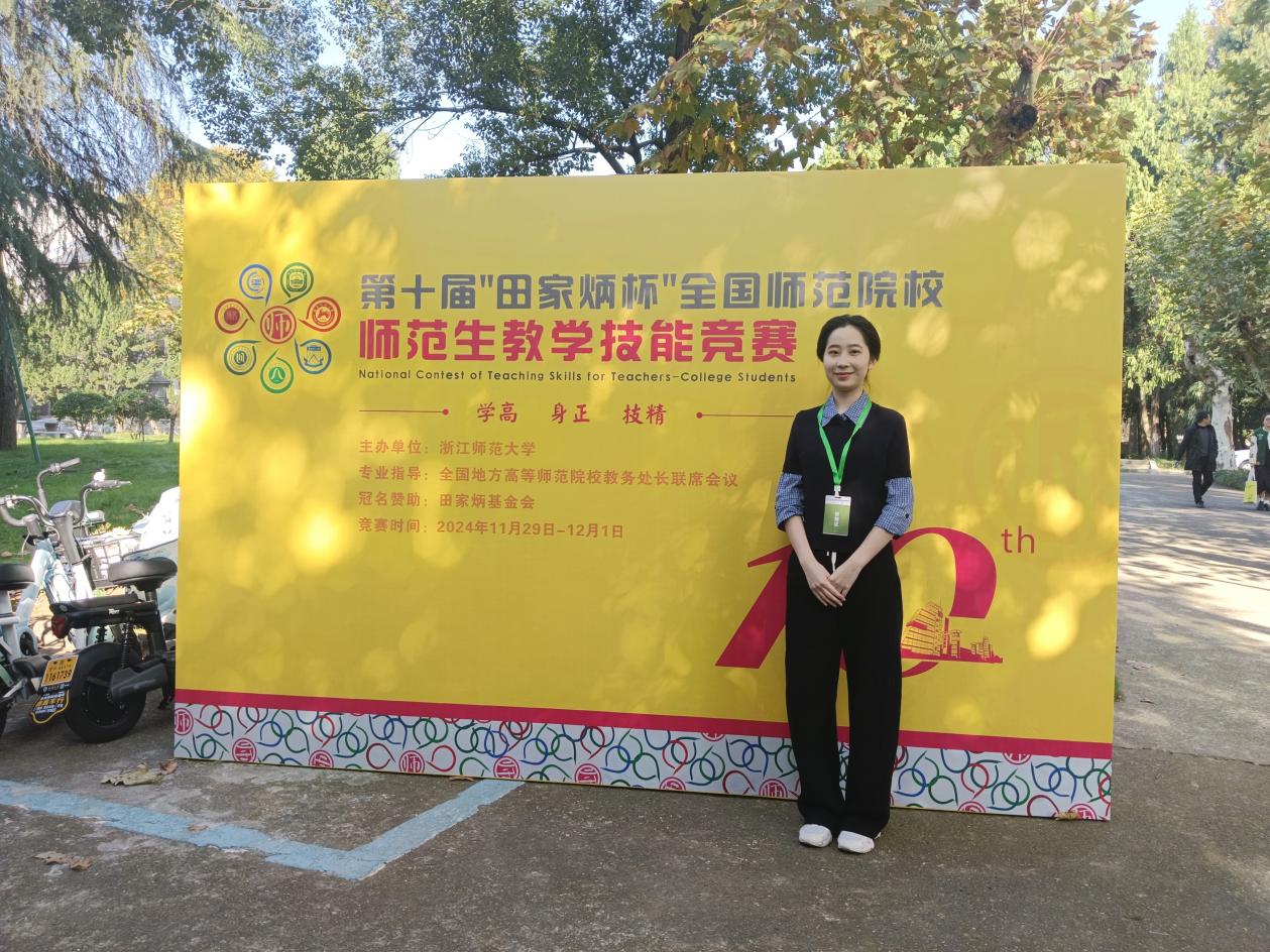 1129121日,第十届“田家炳杯”全国师范院校师范生教学技能竞赛决赛在浙江师范大学举行,来自北京师范大学、华东师范大学、华南师范大学、华中师范大学、湖南师范大学等高校的509名选手参与决赛。我院英语专业2106班郭思韵同学在偷拍 教师技能指导老师团队的支持和指导下,荣获英语组二等奖。