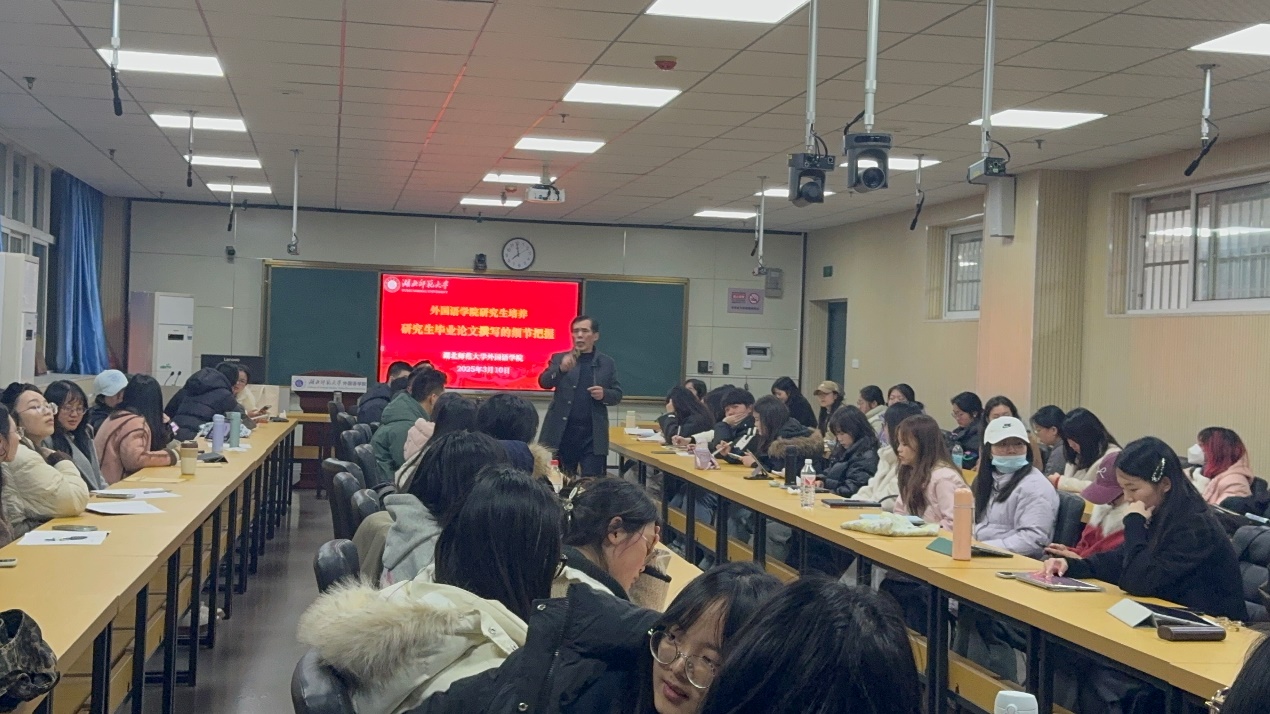 2025年3月10日晚上7点,偷拍 在人文楼21B602教室成功举办硕士研究生毕业论文撰写指导讲座。偷拍 高旭阳教授担任主讲嘉宾,开展了题为“研究生毕业论文撰写细节把控”的指导讲座。偷拍 全体在读研究生聆听了讲座,讲座由偷拍 副院长项军平主持。