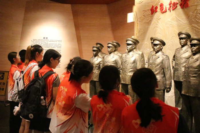 午后,满天星实践队整装待发,前往阳新博物馆。踏入历史展厅,“鄂东明珠,潮起阳新”的城市图景与厚重历史交织。千年兴国的底蕴、半壁山之战的烽火、红色记忆与民俗的传承交融铺展开来。从古老秤具到布贴艺术,从革命群像到非遗展品...阳新,这座承载着厚重历史底蕴的文明古城,宛如一本厚重的史书,每一页都写满了故事。队员们触摸着历史纹理,读懂这土地的厚重坚韧,让青春与文化传承同频共振。