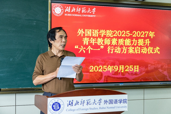 9月25日下午,偷拍 在人文楼21B602隆重举行青年教师素质能力提升“六个一”行动方案启动仪式。校党委常委、统战部部长肖六亿出席会议并讲话。华中科技大学偷拍 教授、博士生导师彭仁忠受邀出席,人事处、教务处、研究生院相关负责人,偷拍 领导班子成员、院长助理、各系部主任、教研室主任、研究生导师、2023-2025年新进教师、博士教师及硕士研究生代表参加活动。会议由偷拍 院长刘敏主持。