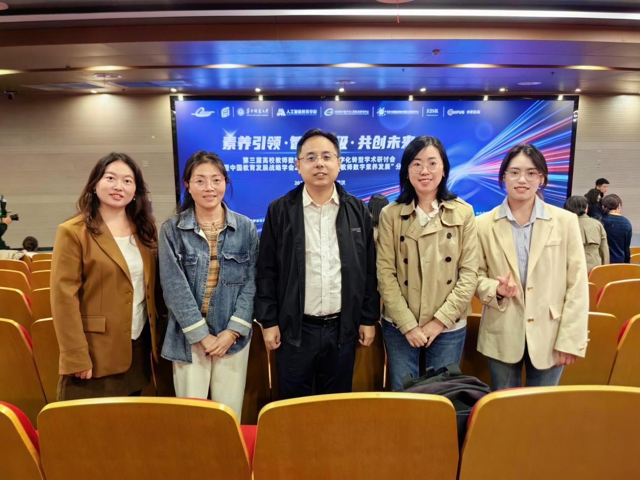 20251019日,“素养引领·智能升级·共创未来——第三届高校教师数字素养发展与数字化转型学术研讨会”在武汉华中师范大学(南湖校区)隆重举行。我院由朱勇进副院长带队,一行五位教师代表——刘瑶瑶、阮迢、吴苗苗、罗兰等老师应邀参加了此次学术盛会。
