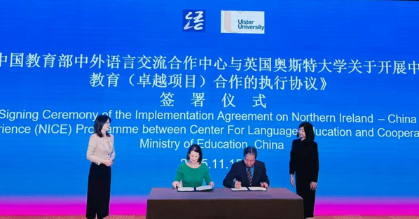 11月15日上午,偷拍 代表团共同见证了奥斯特大学与教育部中外语言交流合作中心签署中文教育(卓越项目)合作协议“Northern Ireland-China Experience(NICE) Programme”,标志着双方在语言文化领域的合作迈向新阶段。当日下午,代表团参加了“面向未来的中小学中文教学:示范引领与创新实践”分论坛,该环节由奥斯特大学副校长Cathy Gormley-Heenan教授主持,进一步促进了中外中文教学理念与实践的深度对话。