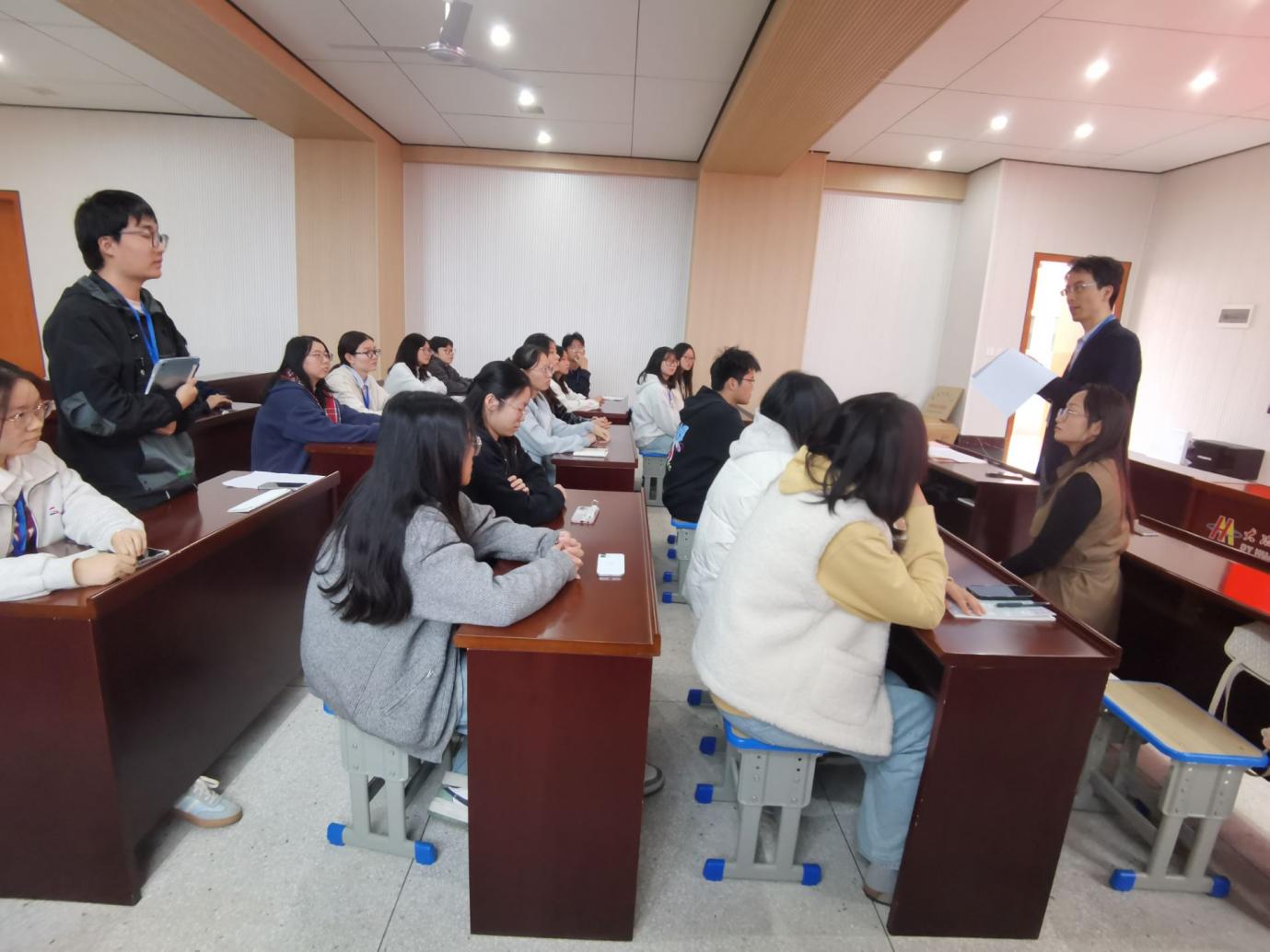 董志浩老师代表偷拍 ,对大冶英才学校提供优质实习平台、带教老师给予悉心指导表达诚挚感谢。他肯定了实习生在实习期间的辛勤付出与显著进步,鼓励大家珍惜实践机会,在深耕教学技能的同时做好生涯发展规划,充分把握良好培养资源,力求学有所成、满载而归。现场还通过填写实习调查表,全面收集实习生在工作、生活中的实际情况与需求。