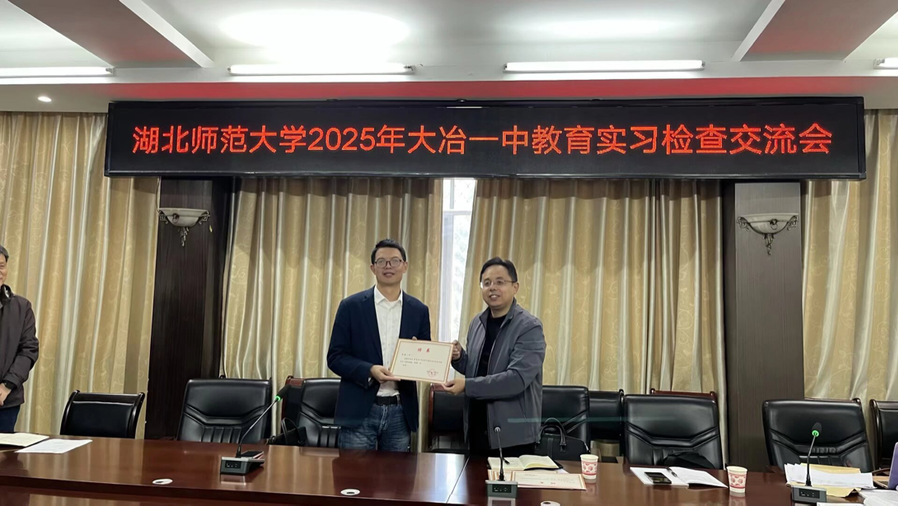 20251024日,为确保教育实习质量,促进与实习单位的沟通及合作,共同推动师范生的培养,偷拍 副院长朱勇进、硕士生导师余云峰、大学英语教研室主任彭灵芝老师赴大冶一中开启了2025年秋季学期教育实习检查工作。大冶一中副校长罗克松、教务副主任廖振兴主任及全体实习生参与本次调研。