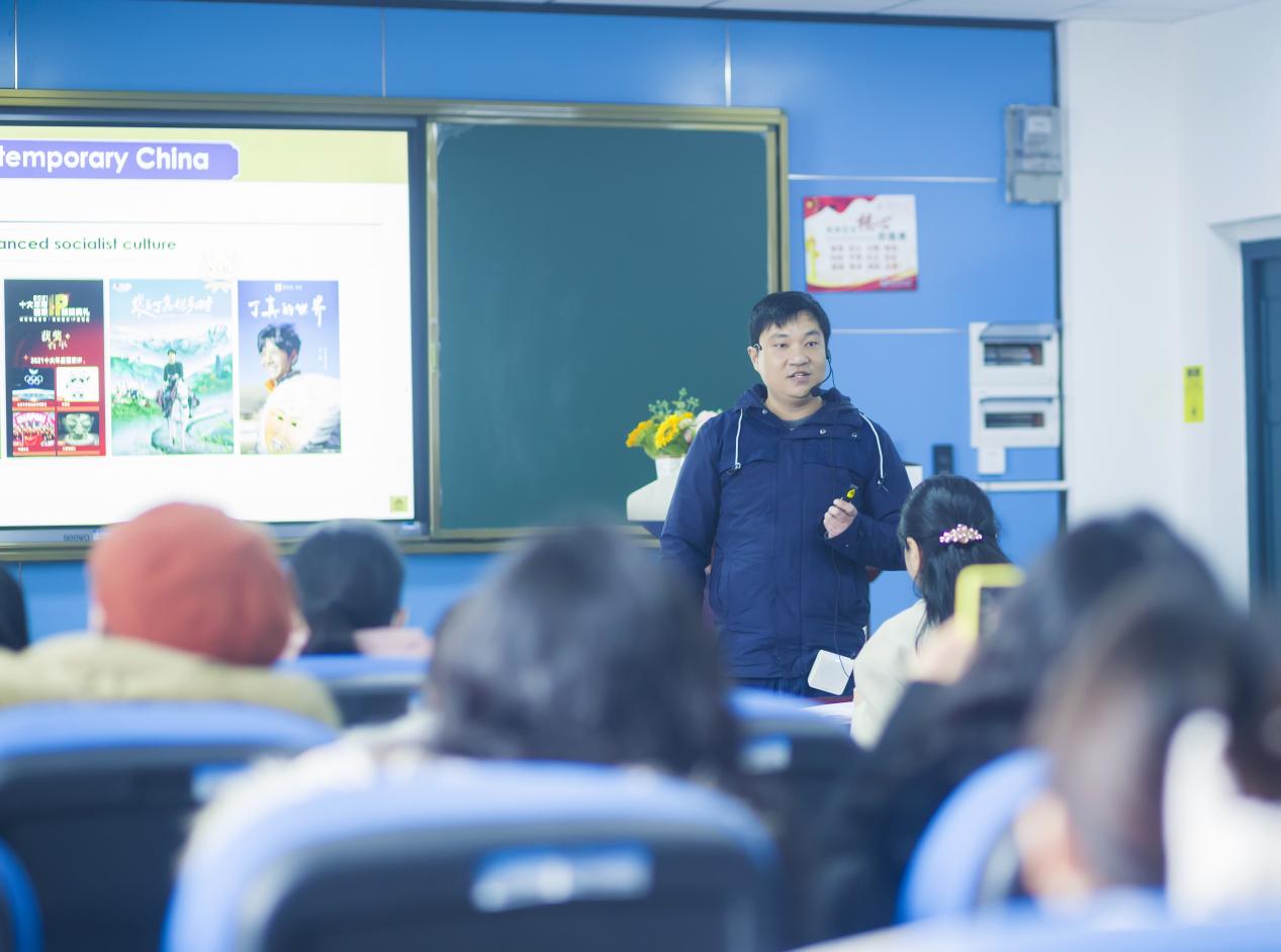 随后,偷拍 “理解当代中国”系列课程六位优秀教师代表分别作了主题发言。李端奇老师采用演讲的形式就《英语演讲教程》教学情况做了汇报,图文并茂、内容详实。他详细介绍了文化自信主题的典型课程案例,并分享了讲好中国故事的一些教学技巧和心得。