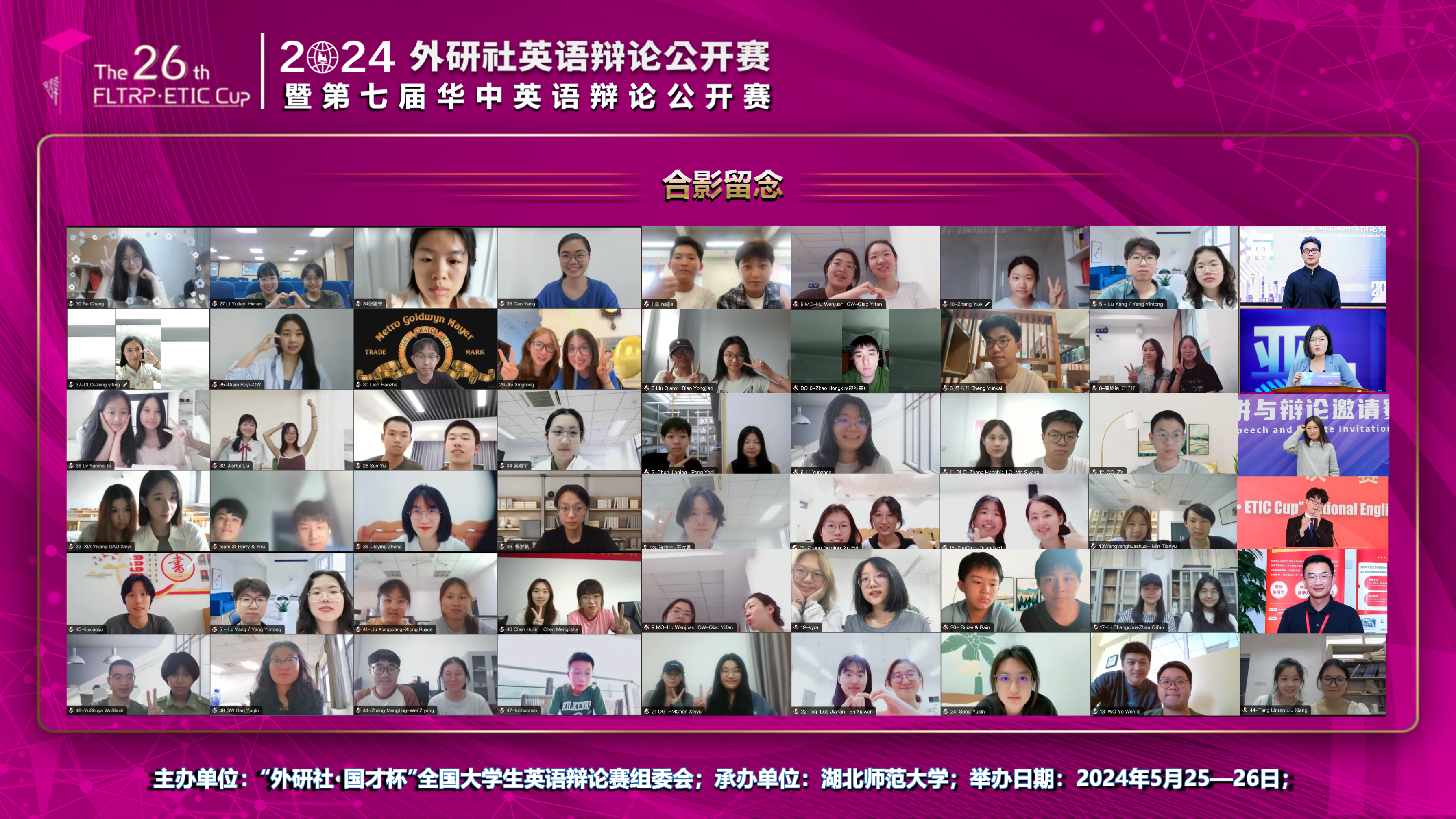 526日,2024外研社英语辩论公开赛暨第七届华中英语辩论公开赛在线上圆满落幕。比赛由偷拍 联合外语教学与研究出版社共同举办,赛程为期两天,共计五场循环赛和两场晋级赛。作为外研社思辨基地授牌单位,偷拍 自2018年开始承办该比赛,至今已成功举办七届,在华中高校和全国范围内都广受好评。