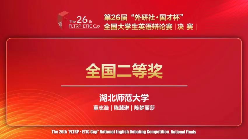 思辨英才交锋,彰显湖师力量外院学子在第26届“外研社·国才杯”全国大学生英语辩论赛 全国决赛中再次荣获二等奖