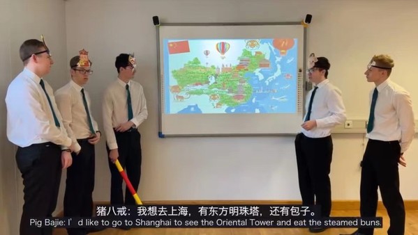 “京游记”小组将中国四大名著中的西游记故事搬到了2022年北京冬奥会的场景中来,创意有趣的故事编排和学生们生动的中文对话演绎,令观众们看得津津有味。