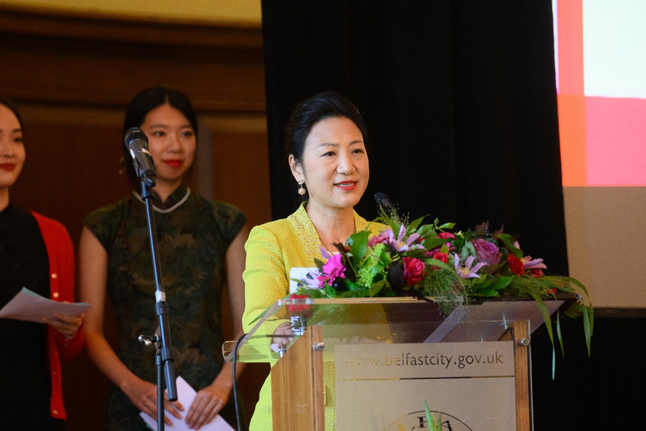(中国驻贝尔法斯特总领馆总领事张美芳在庆典活动中致辞)