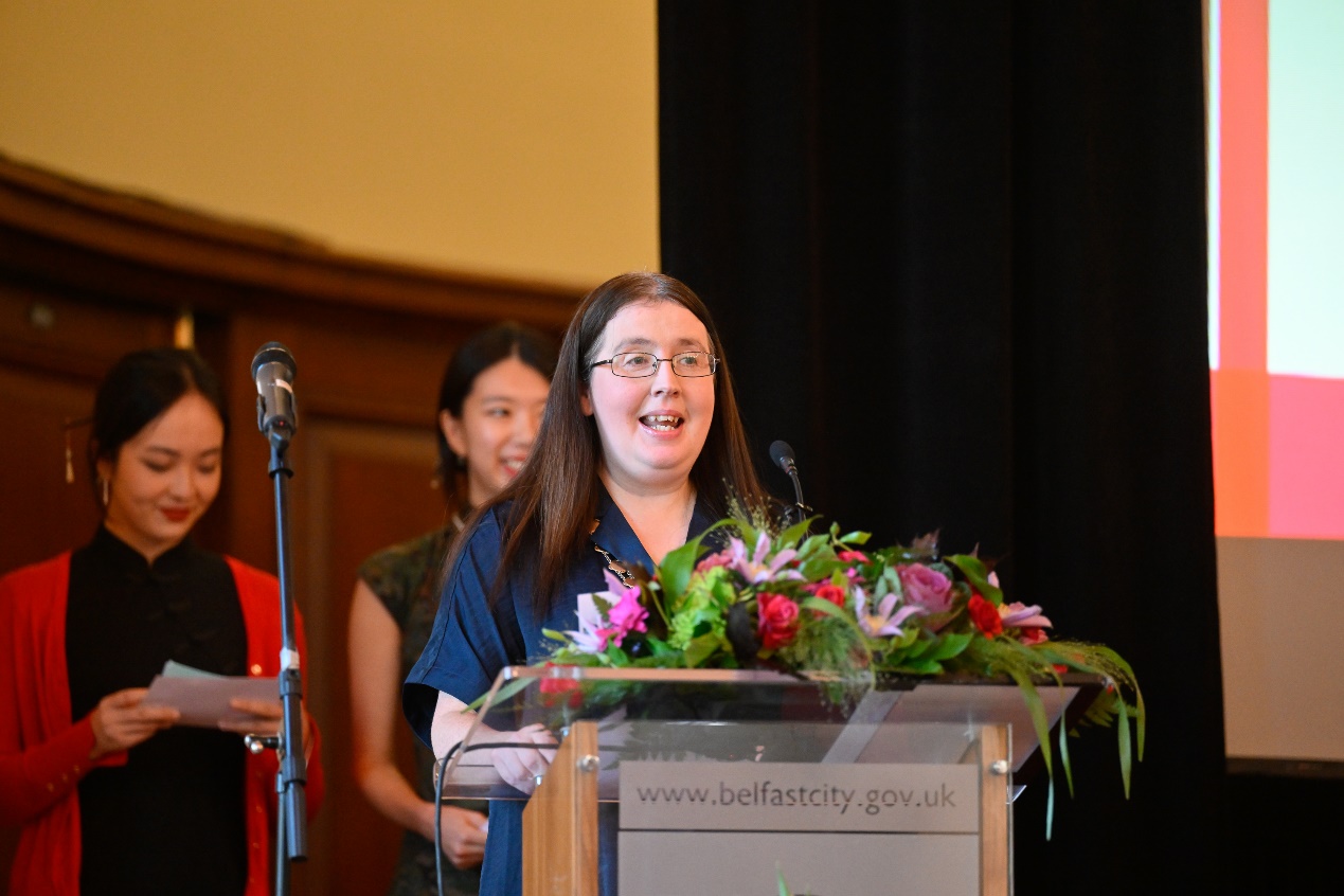 (贝尔法斯特市副市长米歇尔·凯利Michelle Kelly在庆典活动中致辞)