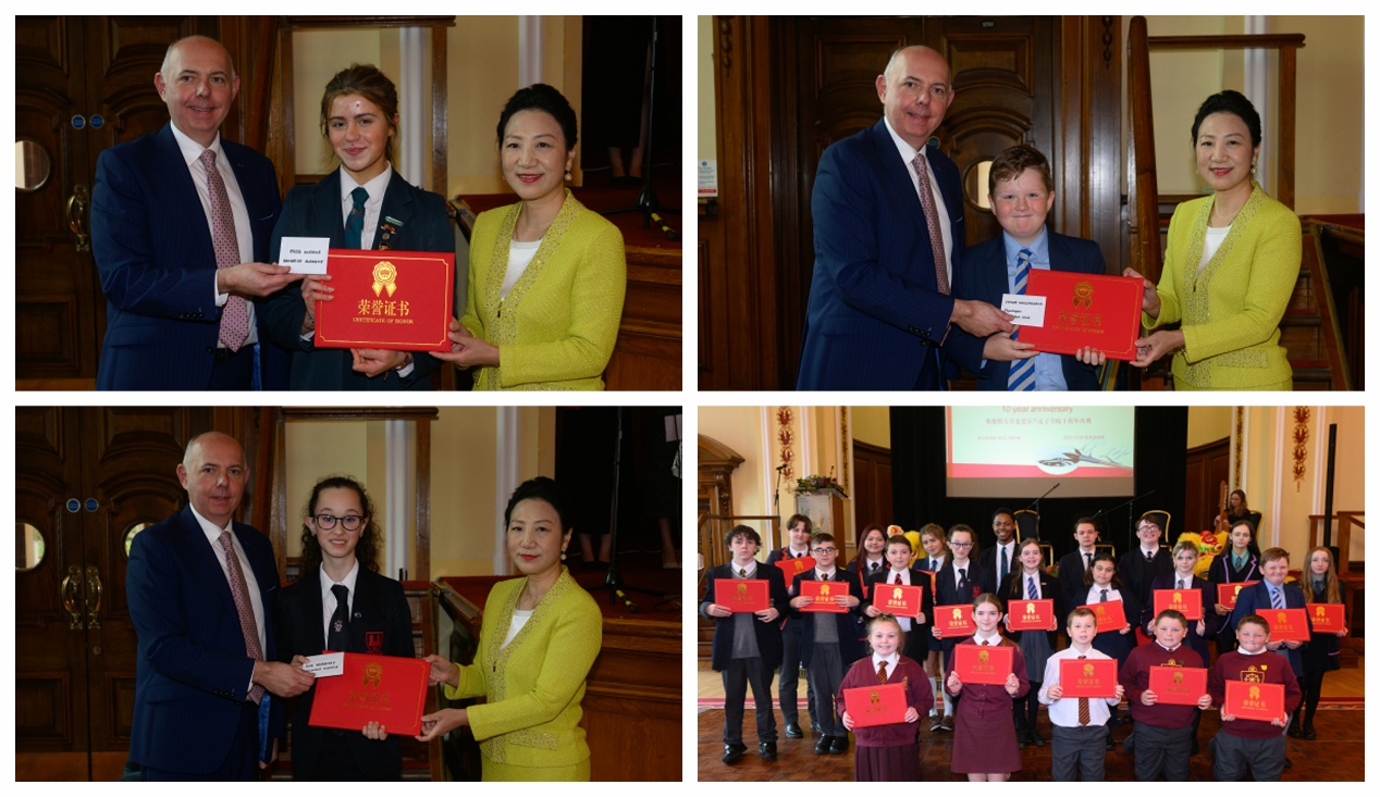 米歇尔·凯利在致辞中表示,奥斯特大学北爱尔兰孔子学院成立十年来,在当地积极开展汉语教学、传播中国文化,深受各界民众欢迎,为增进北爱尔兰人民对中国文化的了解、促进两地教育、经济、文化交往作出了重要贡献,并祝孔子学院取得更大成绩和更好发展。