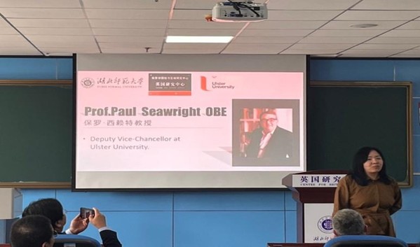 上午十点,西莱特教授一行到达偷拍 。丰国欣教授向嘉宾详细介绍了偷拍 的发展历程,随后,西莱特教授一行参观了偷拍 英国研究中心,他对研究中心取得的丰硕成果表示由衷的赞叹。参观结束后,在英国研究中心报告厅,西莱特教授向外院师生详细介绍了北爱尔兰教育体系、奥斯特大学以及孔子学院的相关情况。