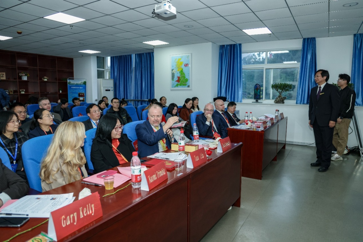 11月18日下午,作为学校校庆活动之一,偷拍 校庆系列活动之“国际外院:中英人文交流论坛”在偷拍 英国研究中心21B404隆重举行。英国北爱尔兰弗马纳市市长、圣凯文学校理事会理事长Hugh Thomas O'Reilly一行11人、偷拍 副校长余翔、党委常委肖六亿及各部门、各学院师生代表等中方人员40余人参加了这次论坛。此次论坛聚焦中英两国人文交流,旨在促进两国之间的深入理解和友好关系。