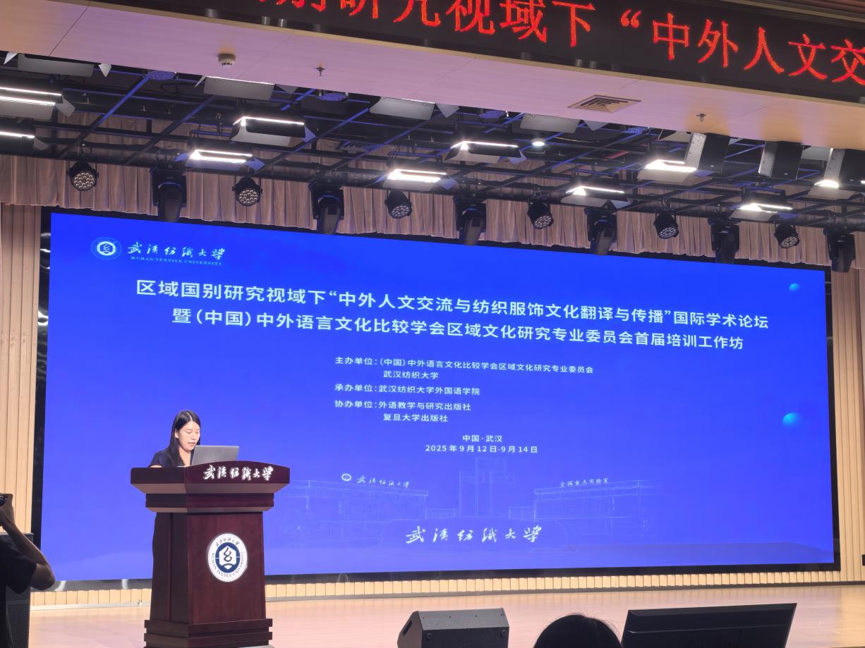 2025913日至14日,“区域国别研究视域下中外人文交流与纺织服饰文化翻译与传播”国际学术论坛暨(中国)中外语言文化比较学会区域文化研究专业委员会首届培训工作坊在武汉纺织大学隆重举行。我院由项军平副院长和朱勇进副院长带队,一行八位教师代表应邀参加了此次学术盛会。